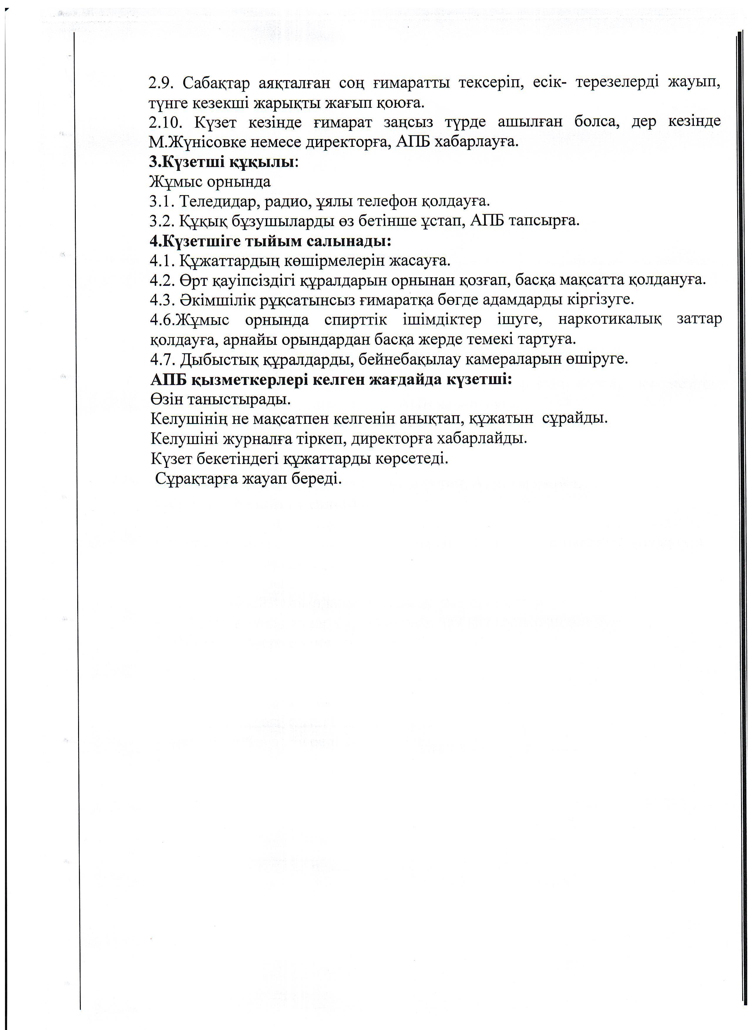 Мектеп-гимназияны күзеті туралы нұсқаулық » Коммунальное государственное учреждение 'Средняя школа гимназия имени Кадыргали Косымулы Жалаири'