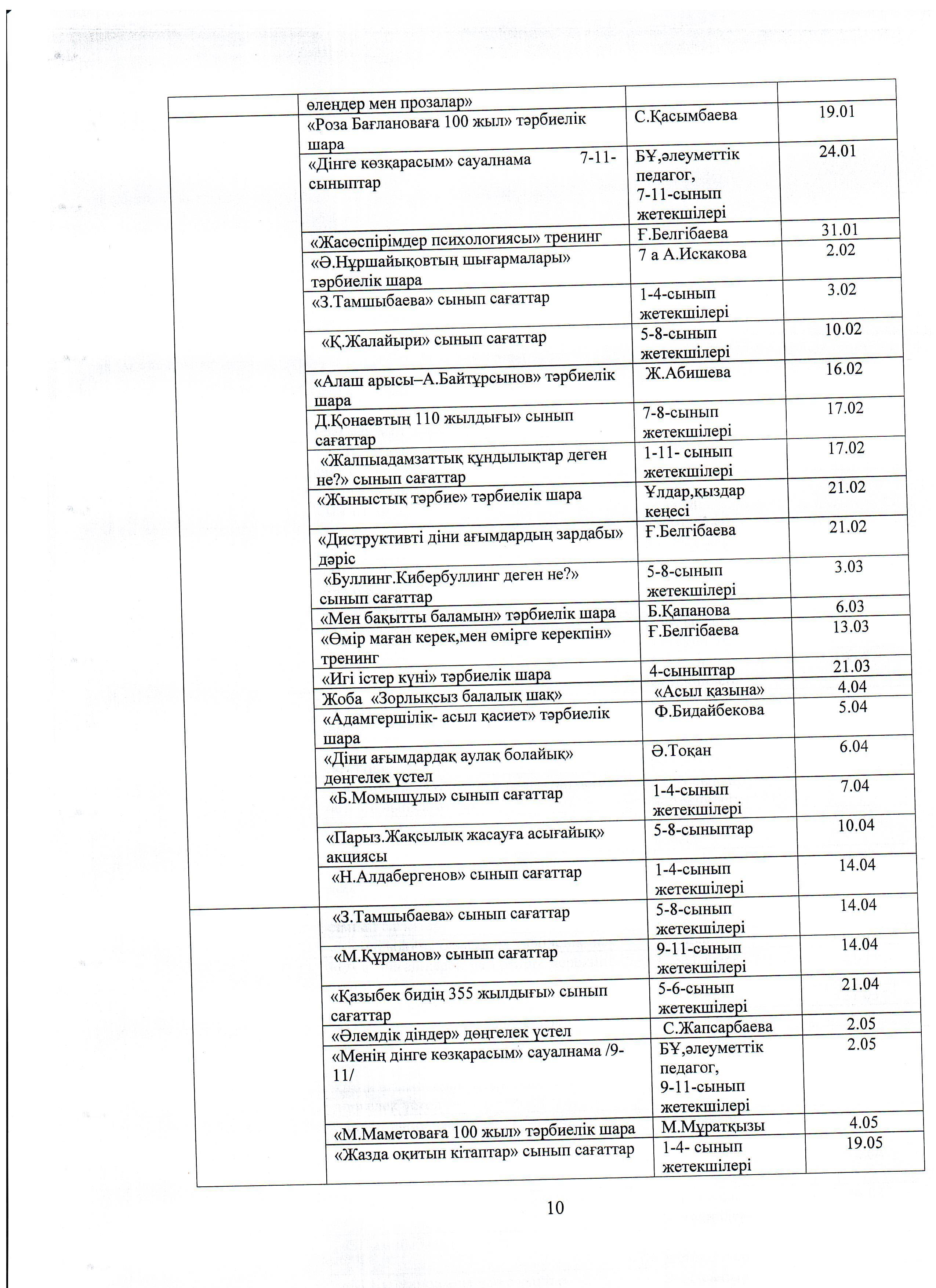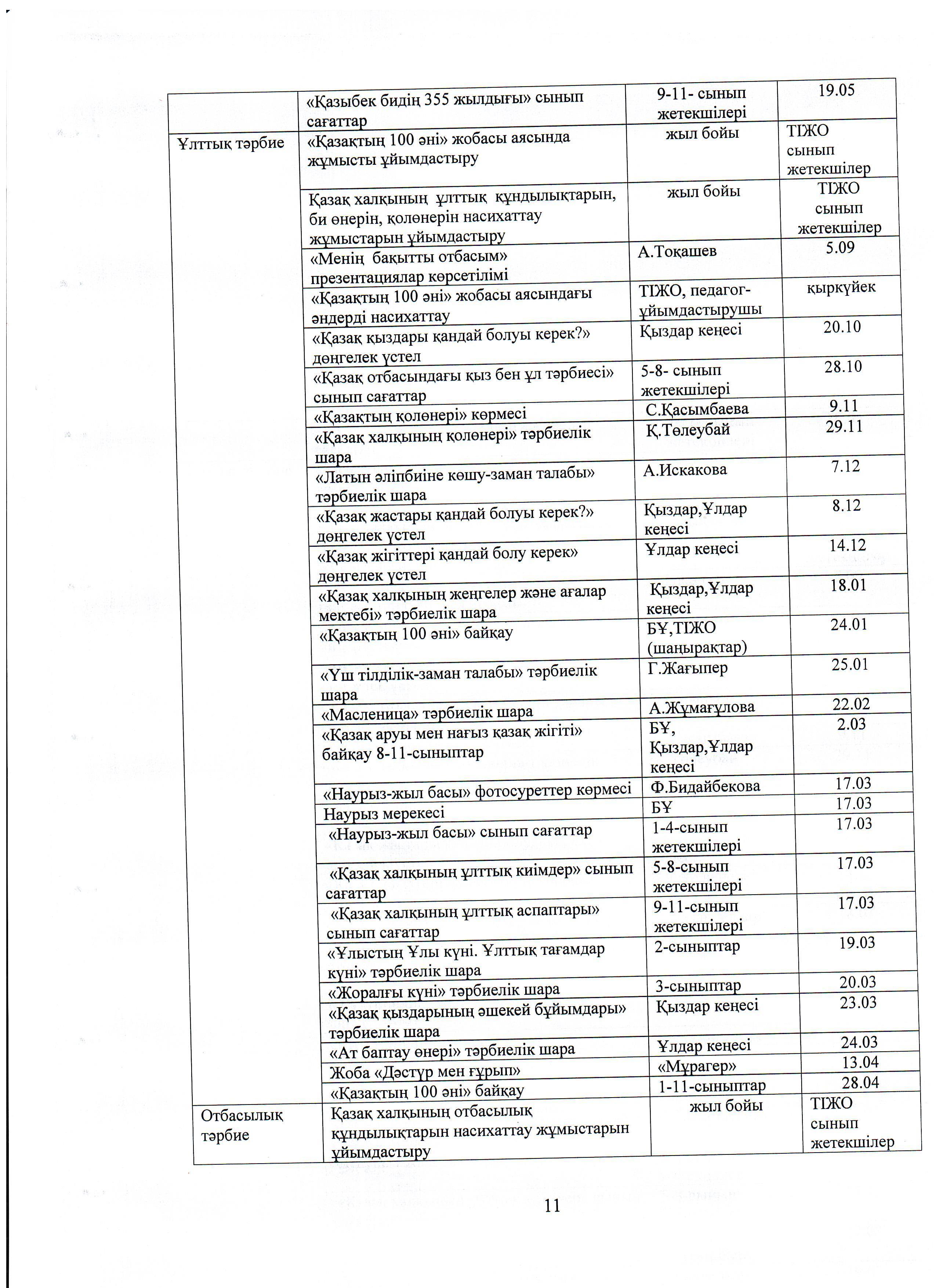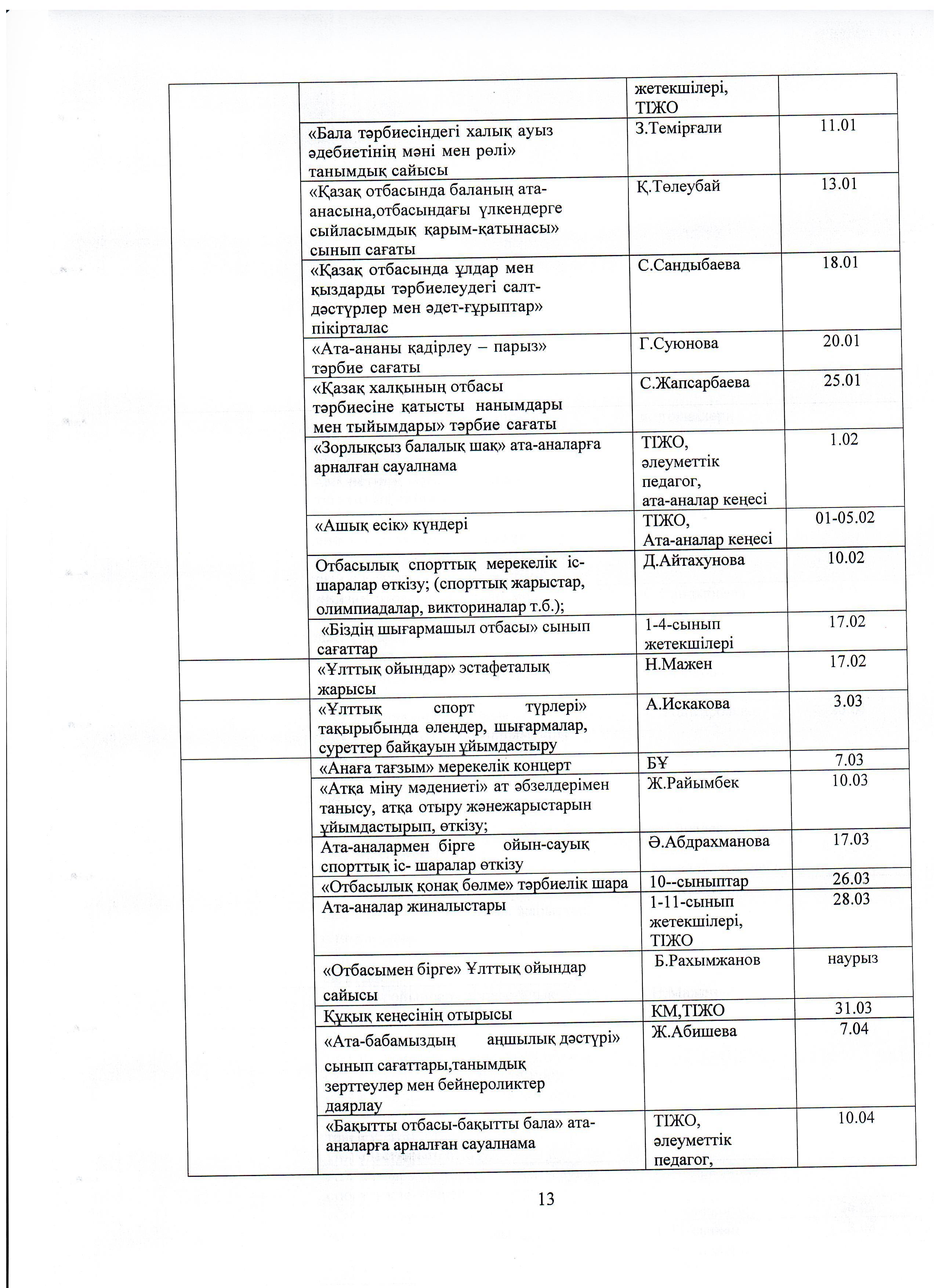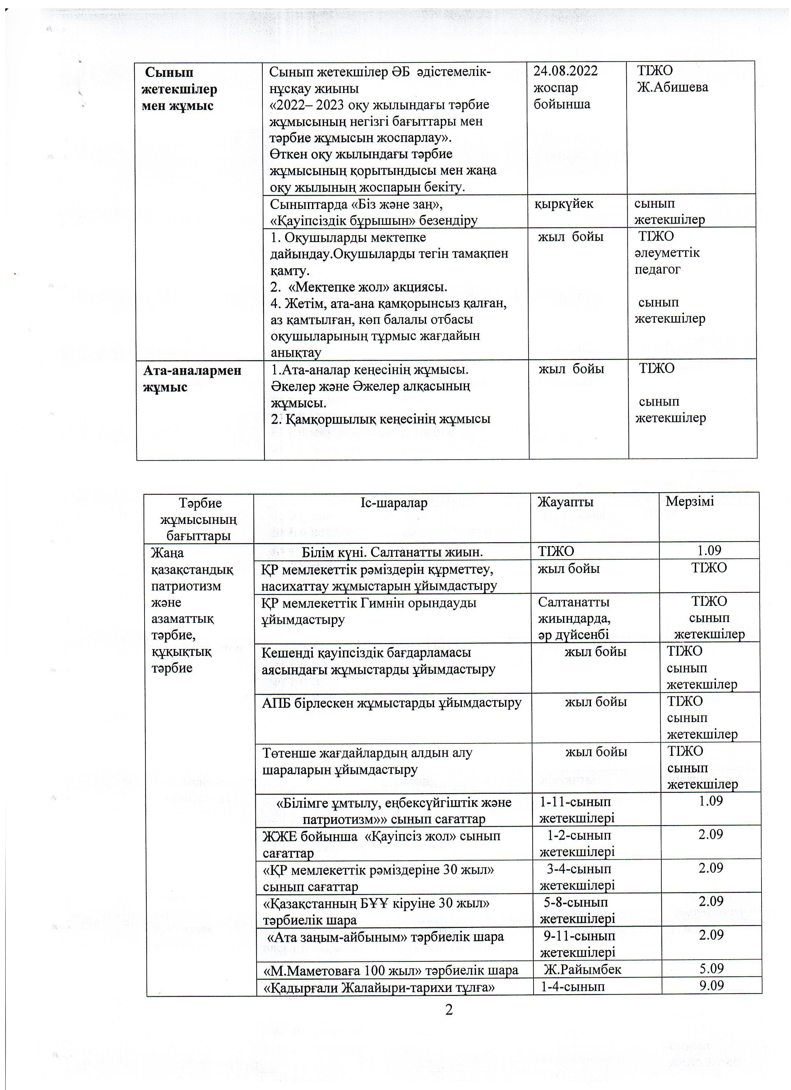 Тәрбие жұмысының жоспары » Коммунальное государственное учреждение 'Средняя школа гимназия имени Кадыргали Косымулы Жалаири'
