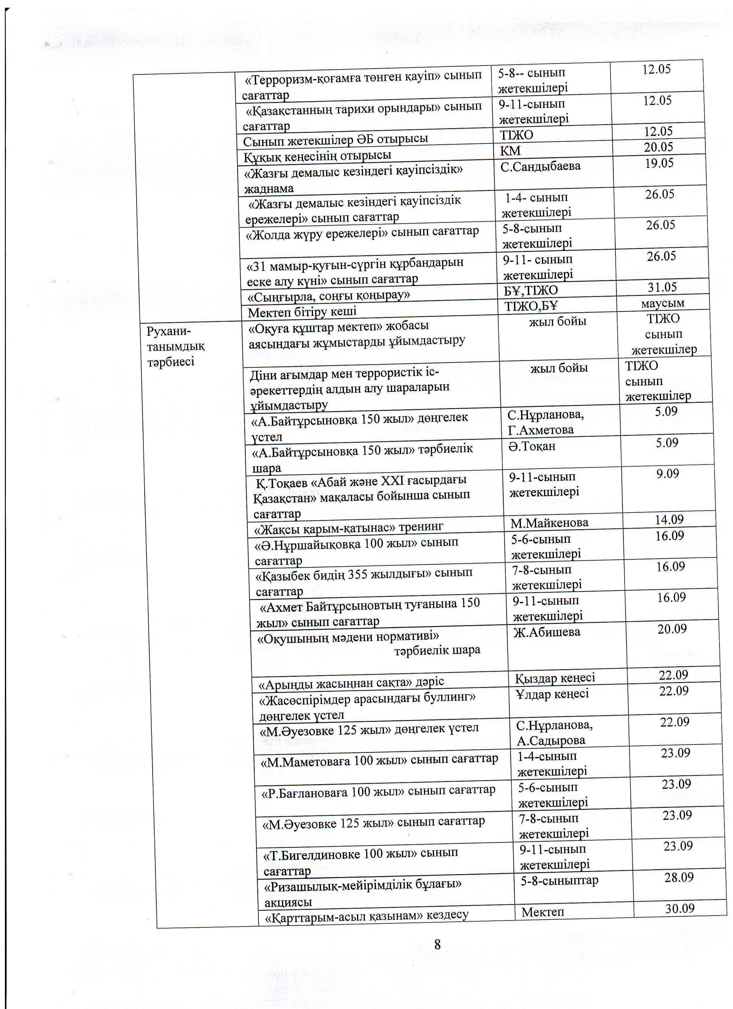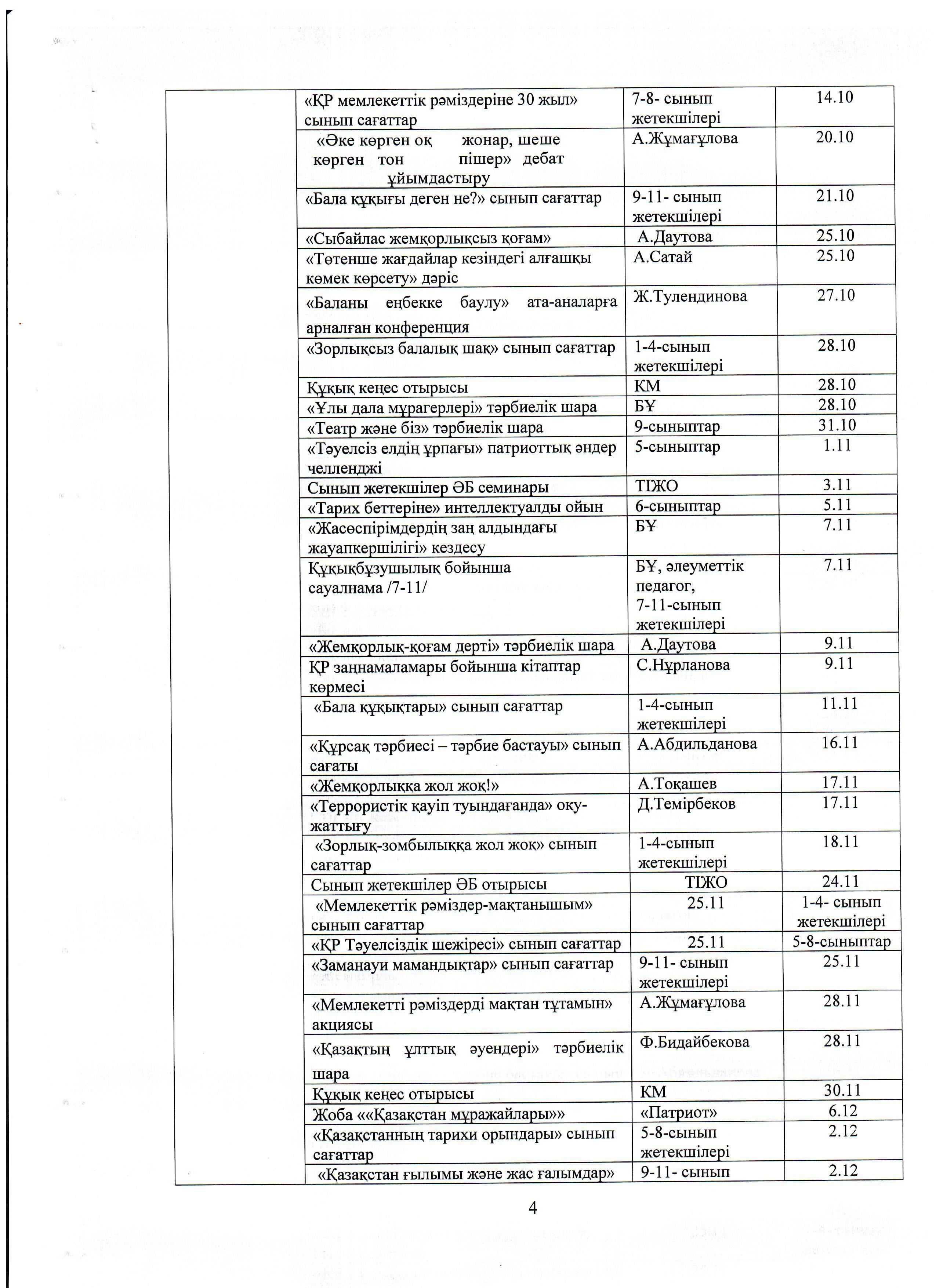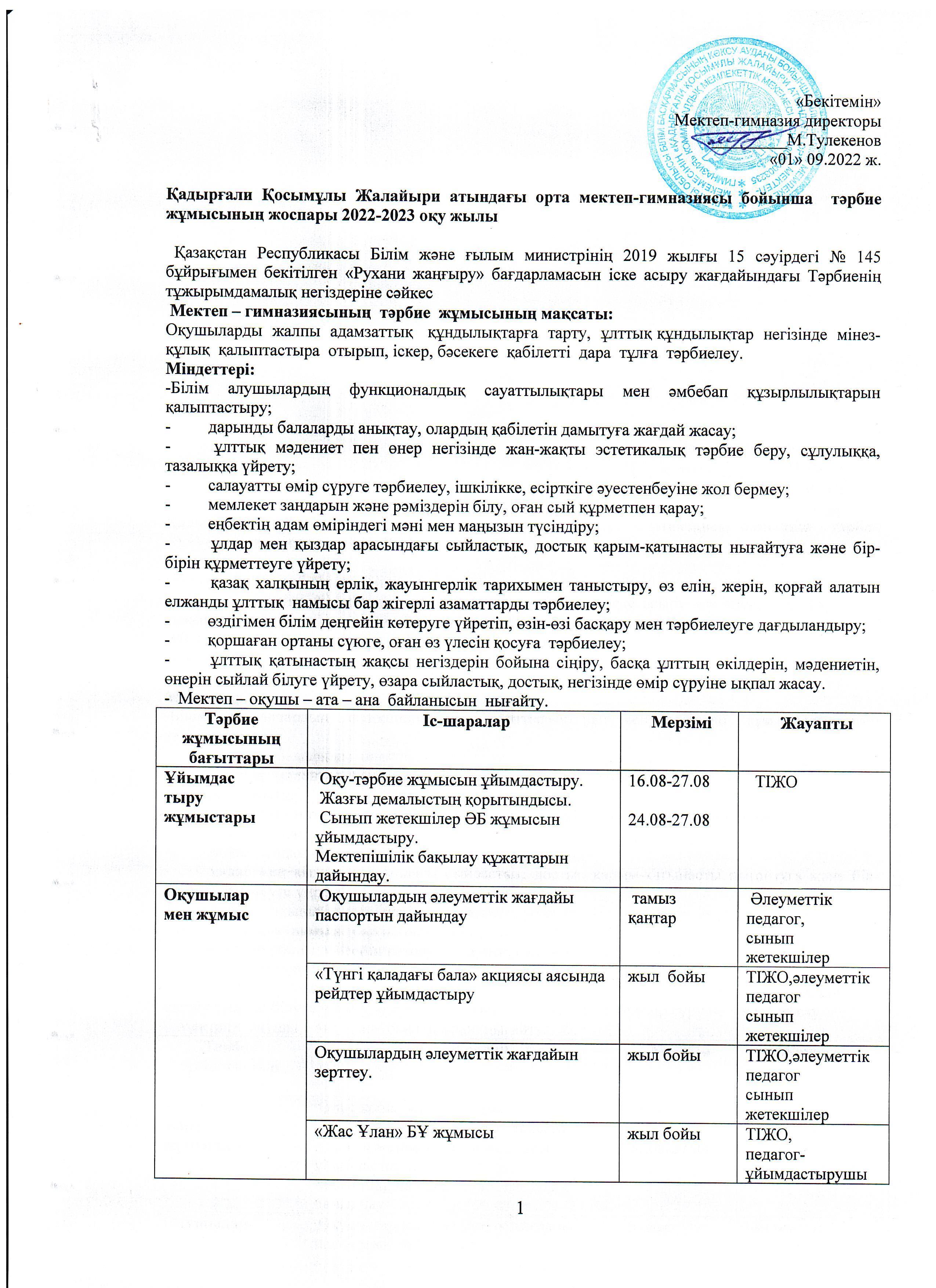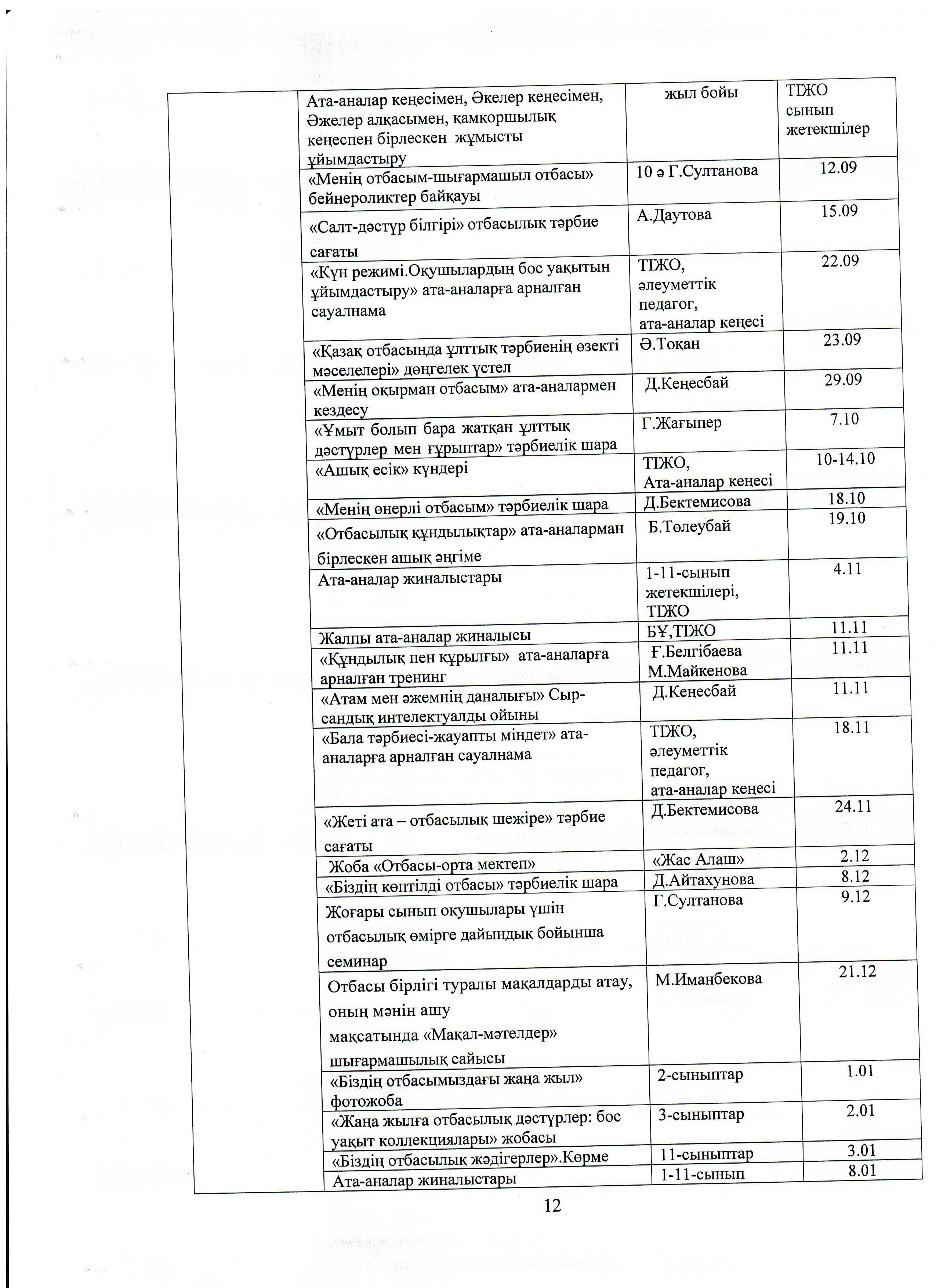 Тәрбие жұмысының жоспары » Коммунальное государственное учреждение 'Средняя школа гимназия имени Кадыргали Косымулы Жалаири'