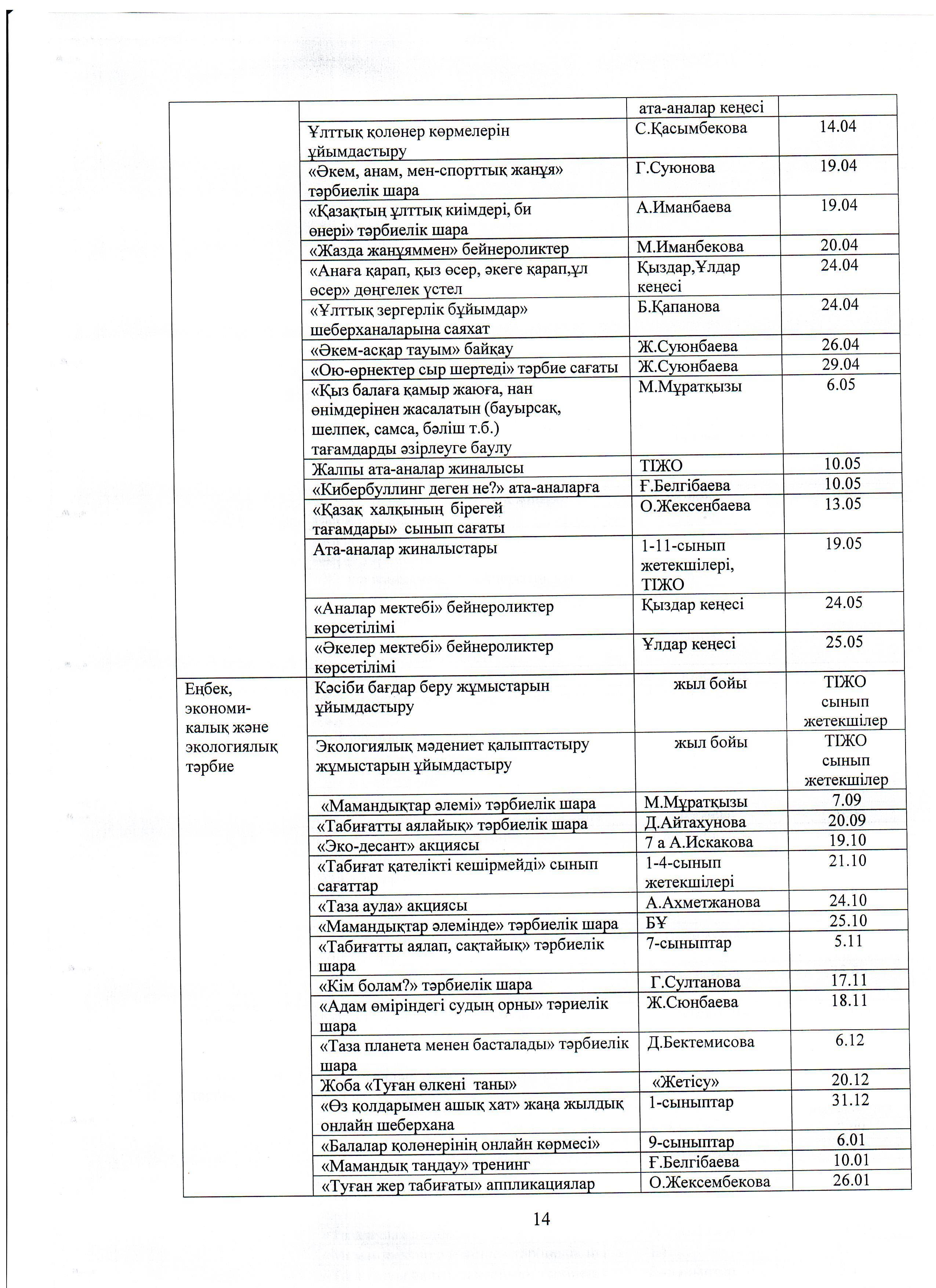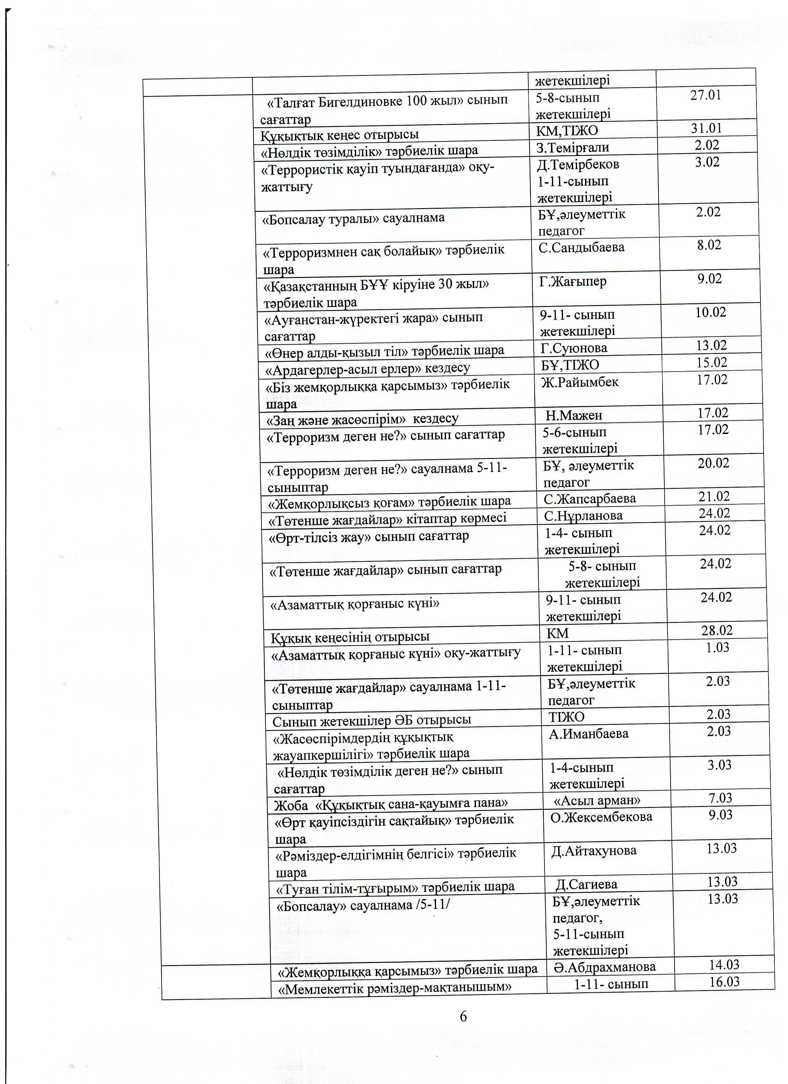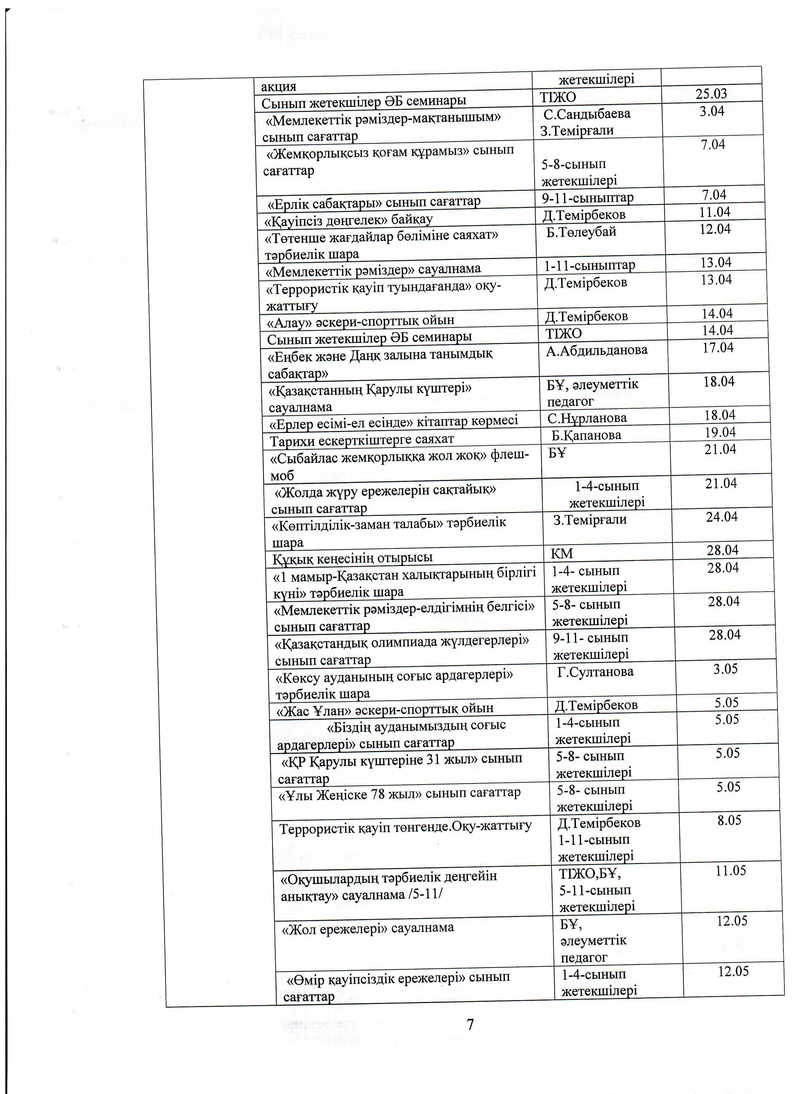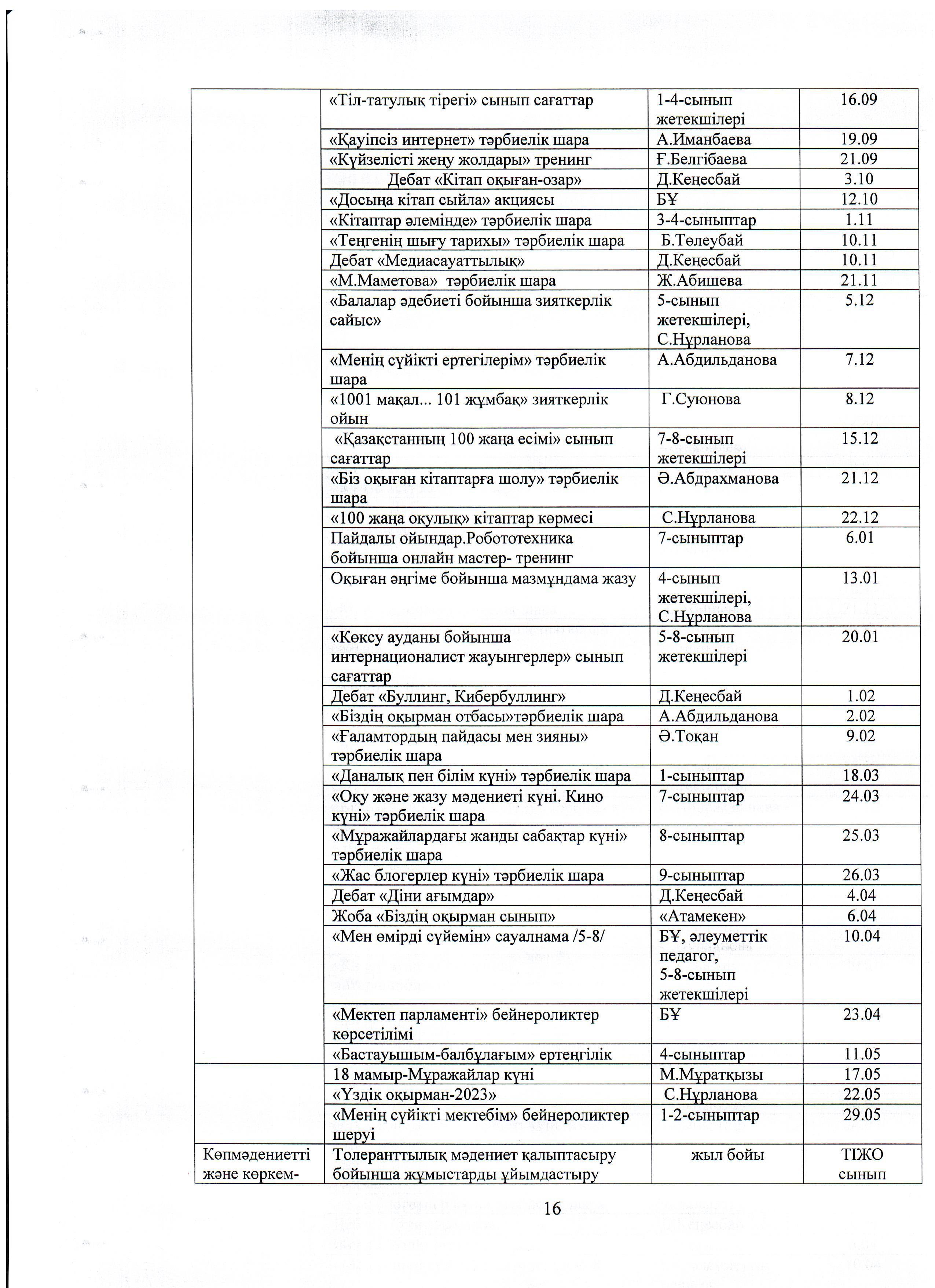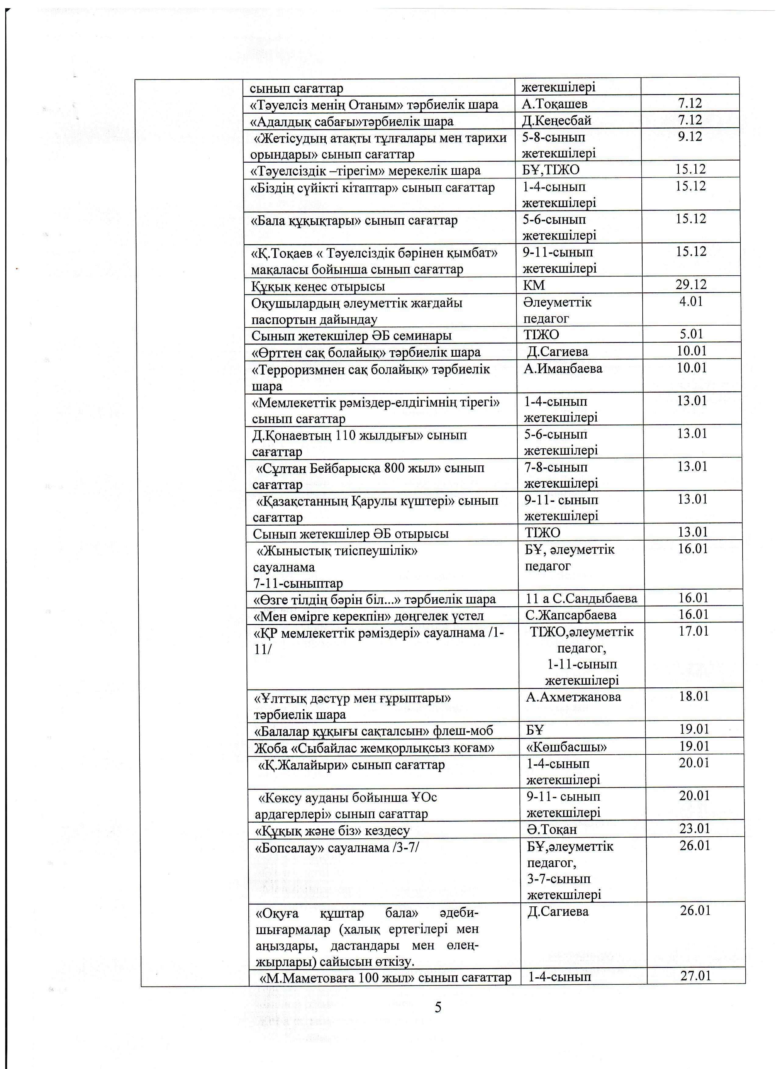 Тәрбие жұмысының жоспары » Коммунальное государственное учреждение 'Средняя школа гимназия имени Кадыргали Косымулы Жалаири'