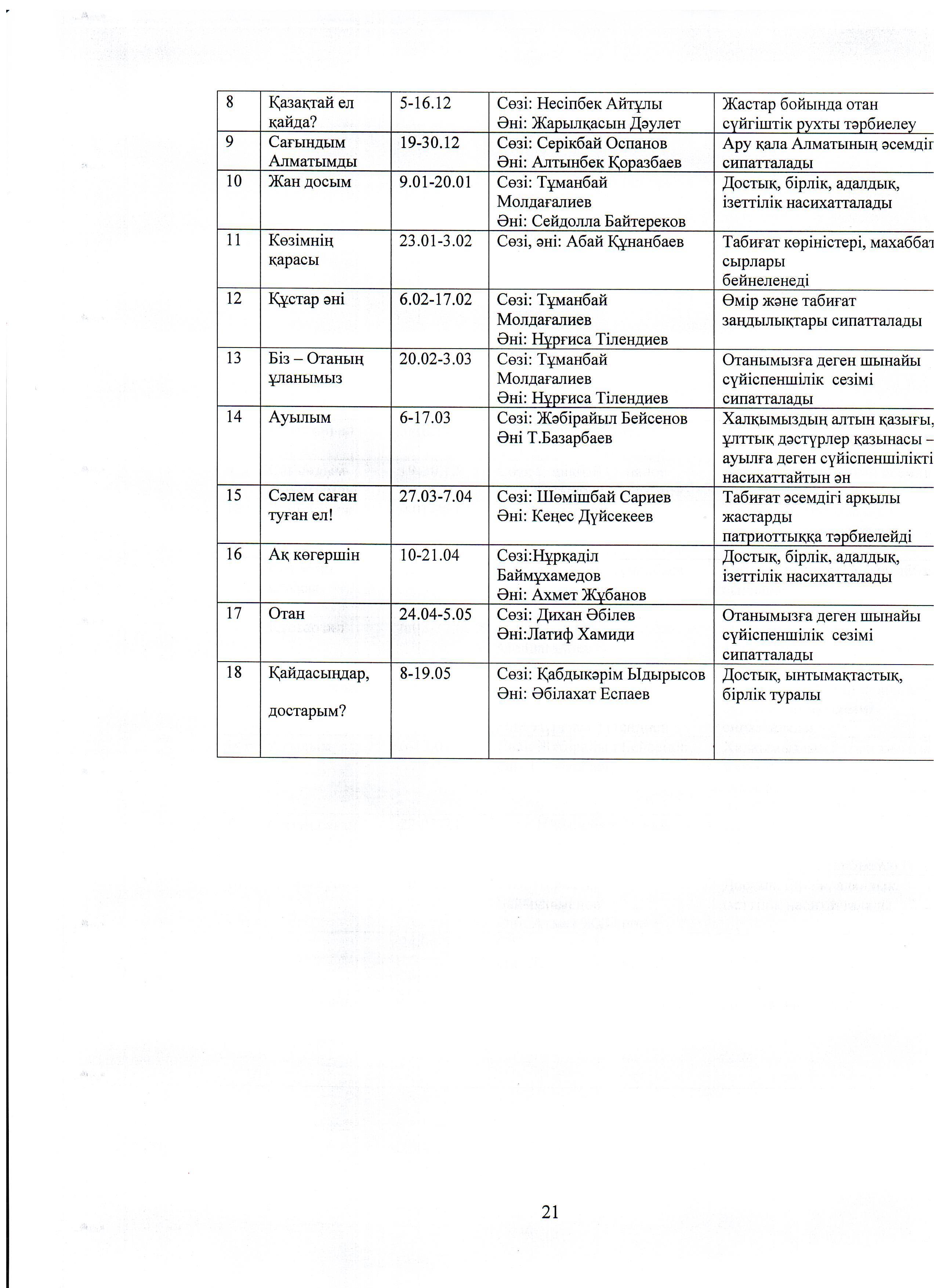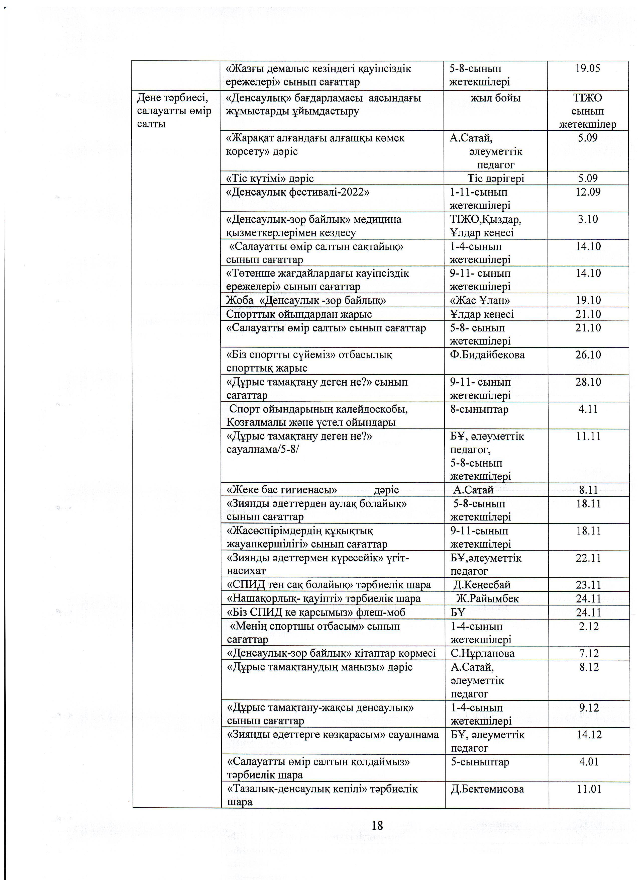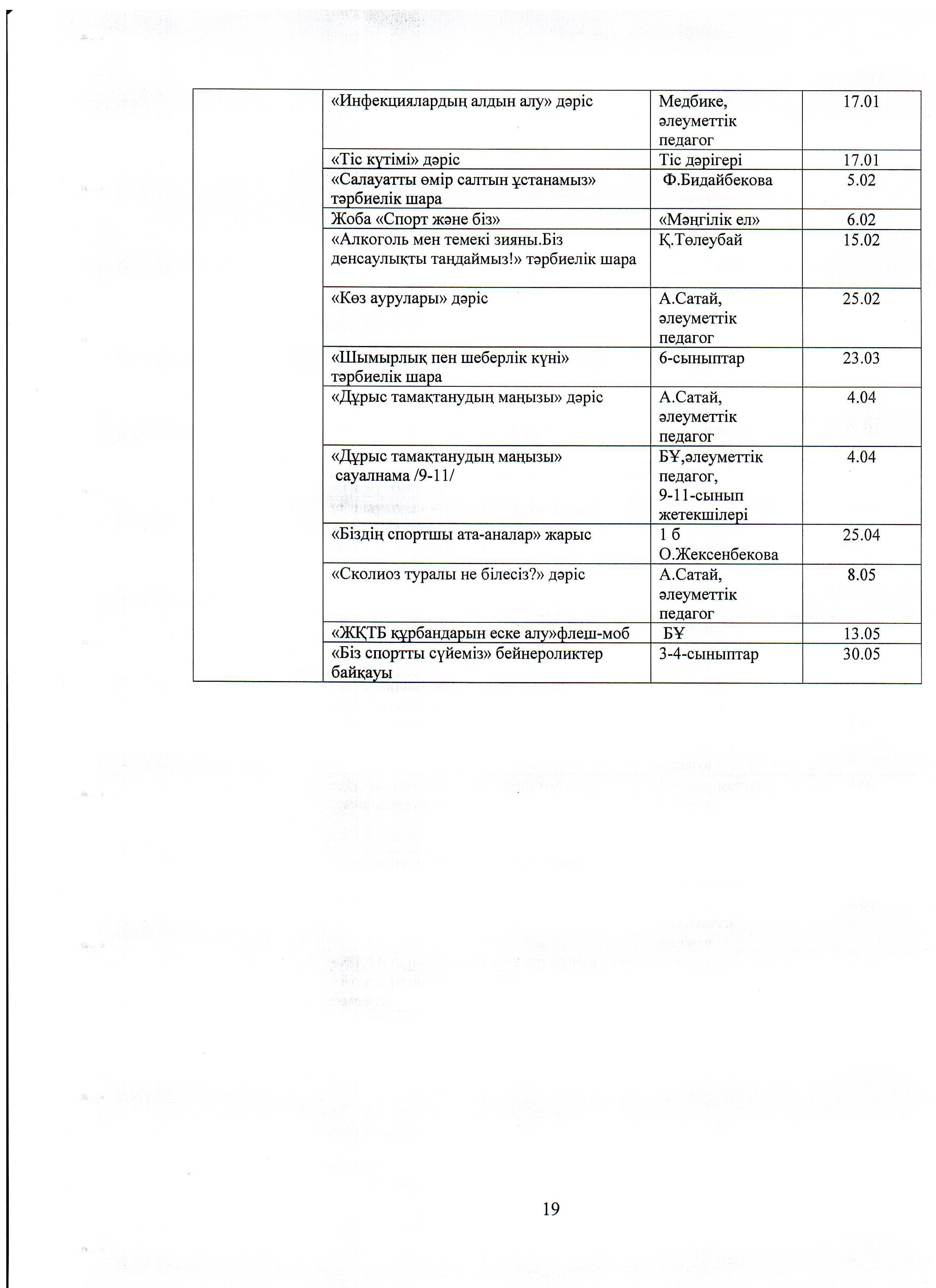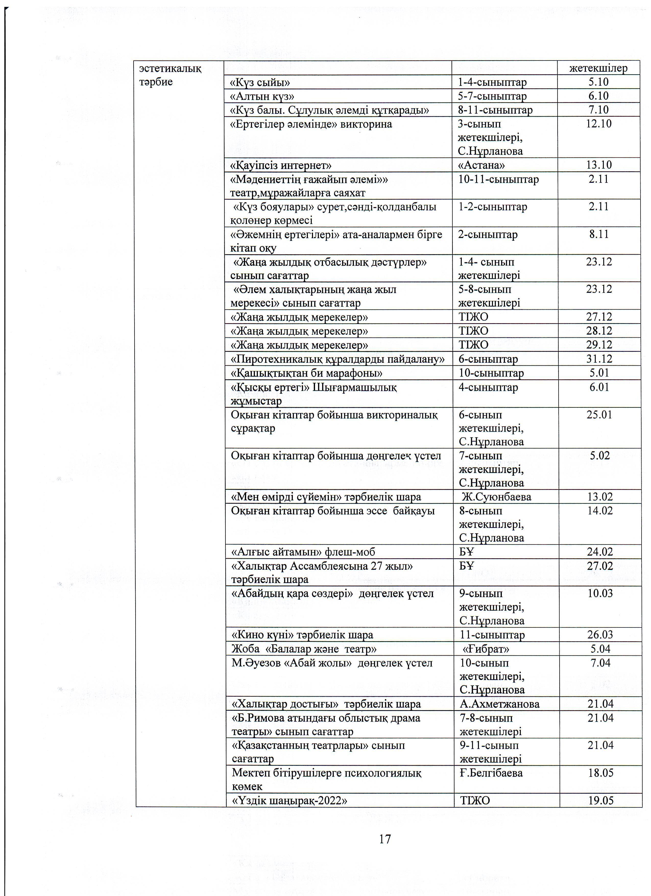 Тәрбие жұмысының жоспары » Коммунальное государственное учреждение 'Средняя школа гимназия имени Кадыргали Косымулы Жалаири'