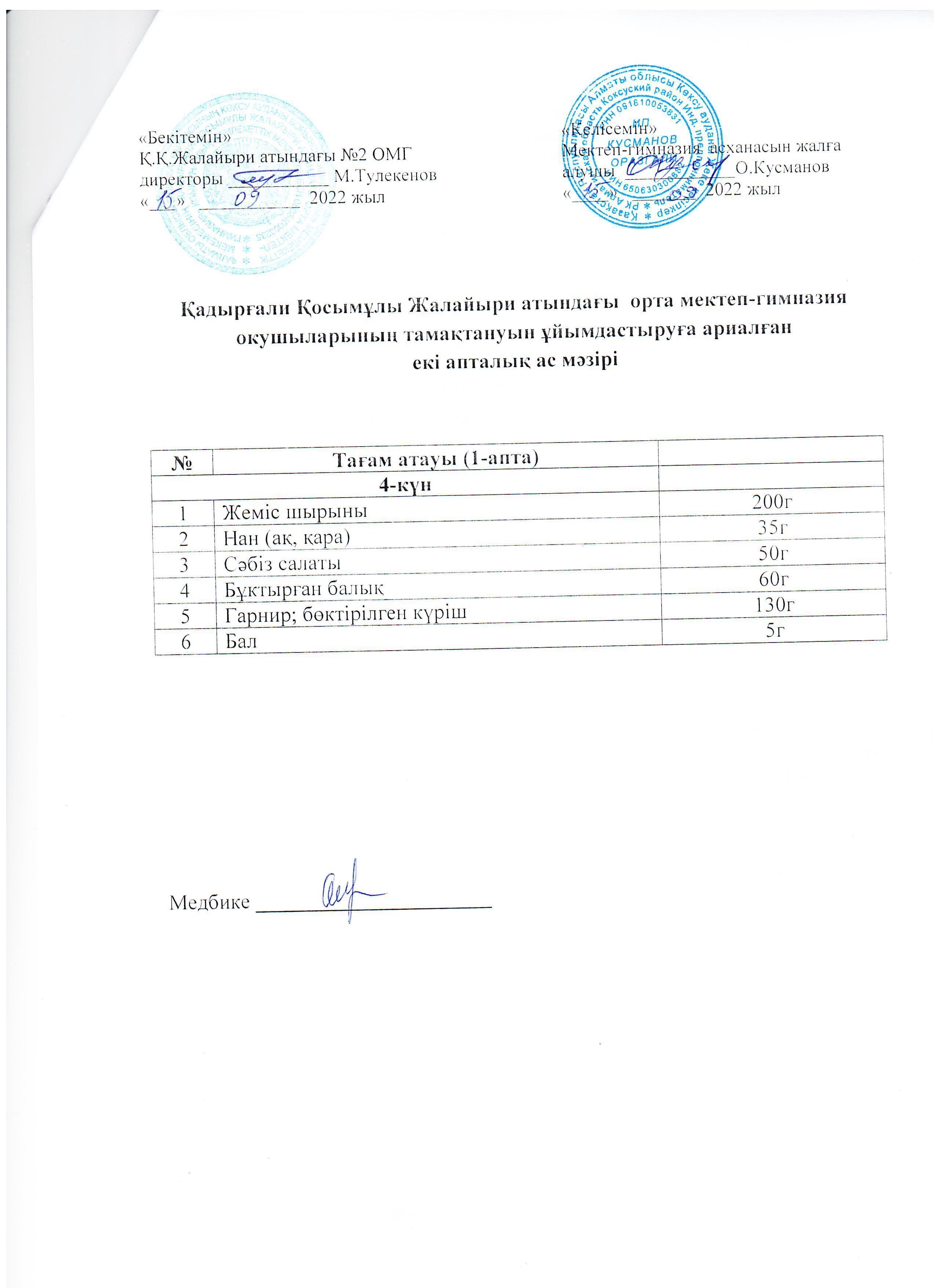 Тамақтың сапасын тексеру актісі » Коммунальное государственное учреждение 'Средняя школа гимназия имени Кадыргали Косымулы Жалаири'