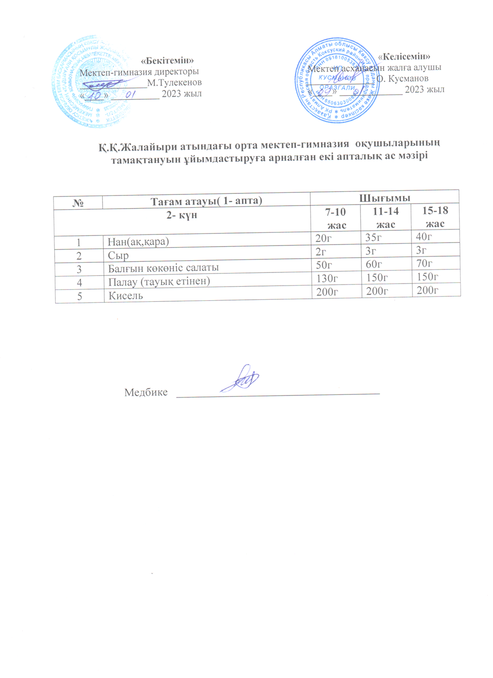 1- апта Сейсенбі. Ас мәзірі » Коммунальное государственное учреждение 'Средняя школа гимназия имени Кадыргали Косымулы Жалаири'