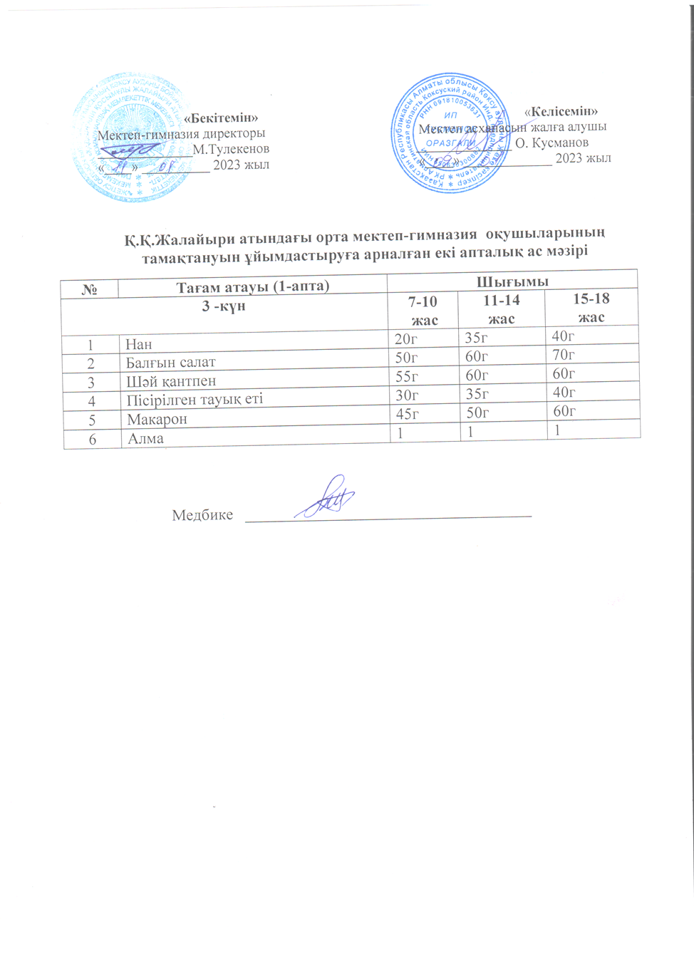 1- апта Сәрсенбі Ас мәзірі » Коммунальное государственное учреждение 'Средняя школа гимназия имени Кадыргали Косымулы Жалаири'