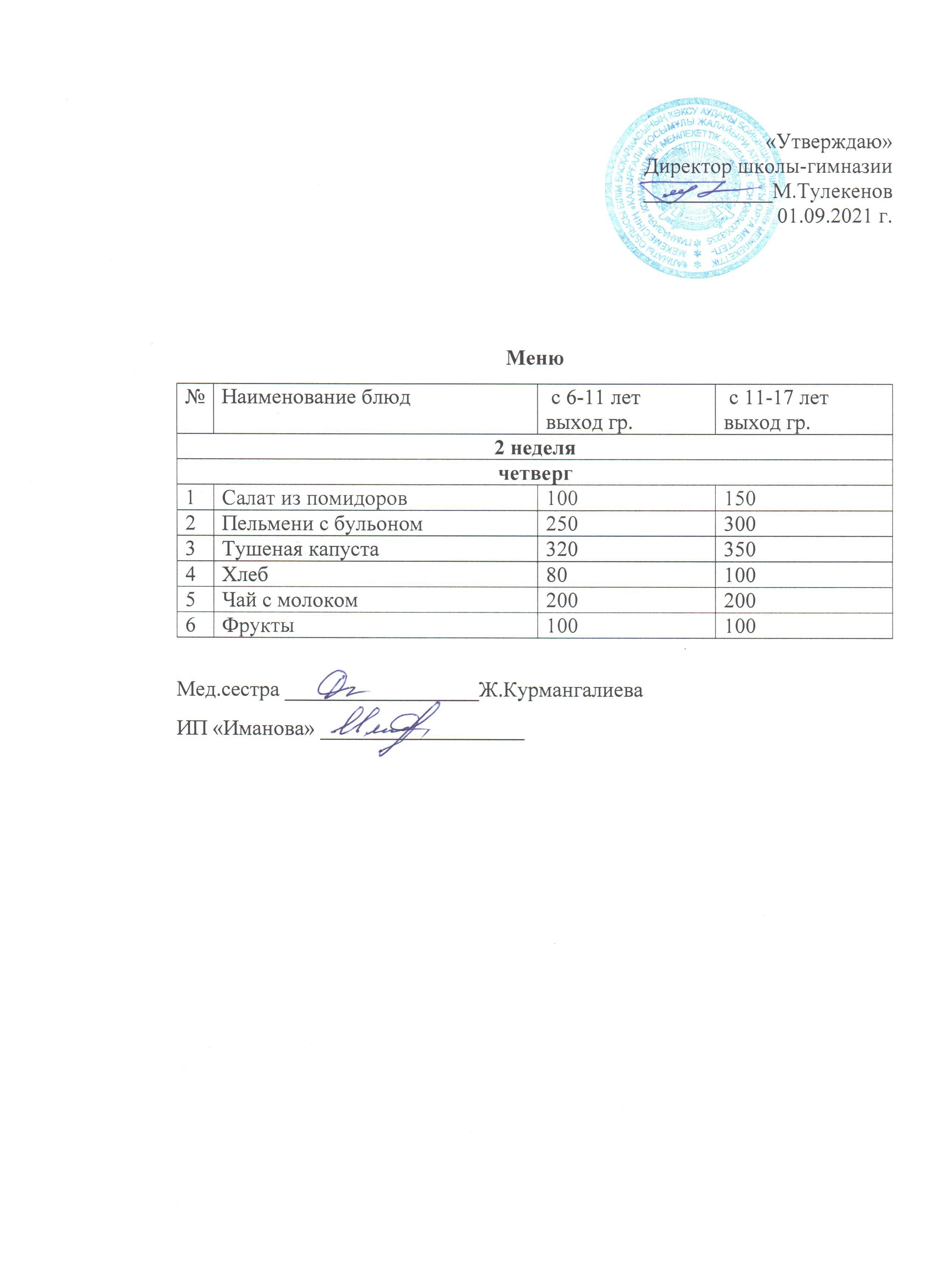 Ас мәзірі бейсенбі 2-апта » Коммунальное государственное учреждение 'Средняя школа гимназия имени Кадыргали Косымулы Жалаири'
