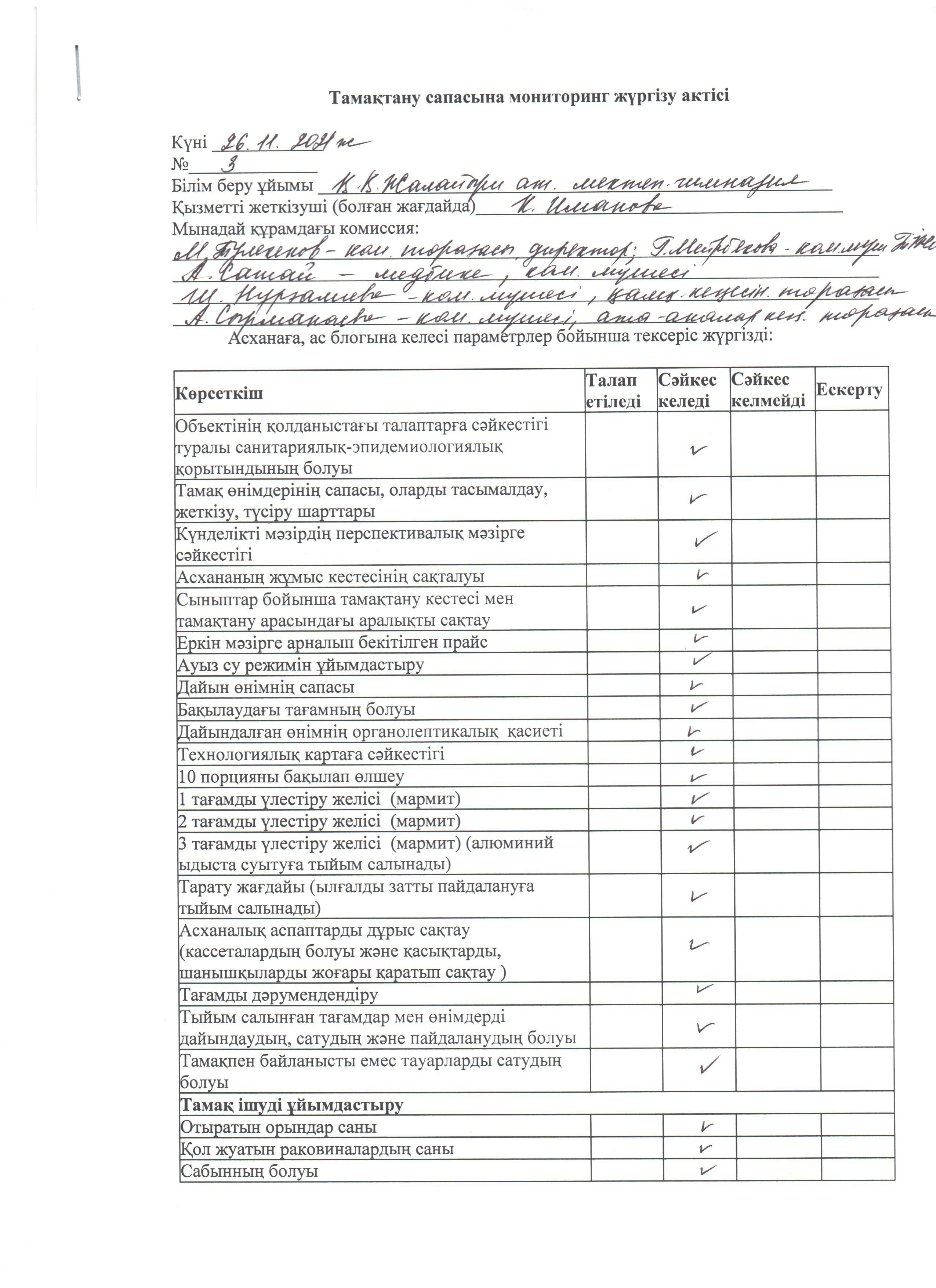 №3 Мониторинг актісі 26.11.2021 ж. » Коммунальное государственное учреждение 'Средняя школа гимназия имени Кадыргали Косымулы Жалаири'