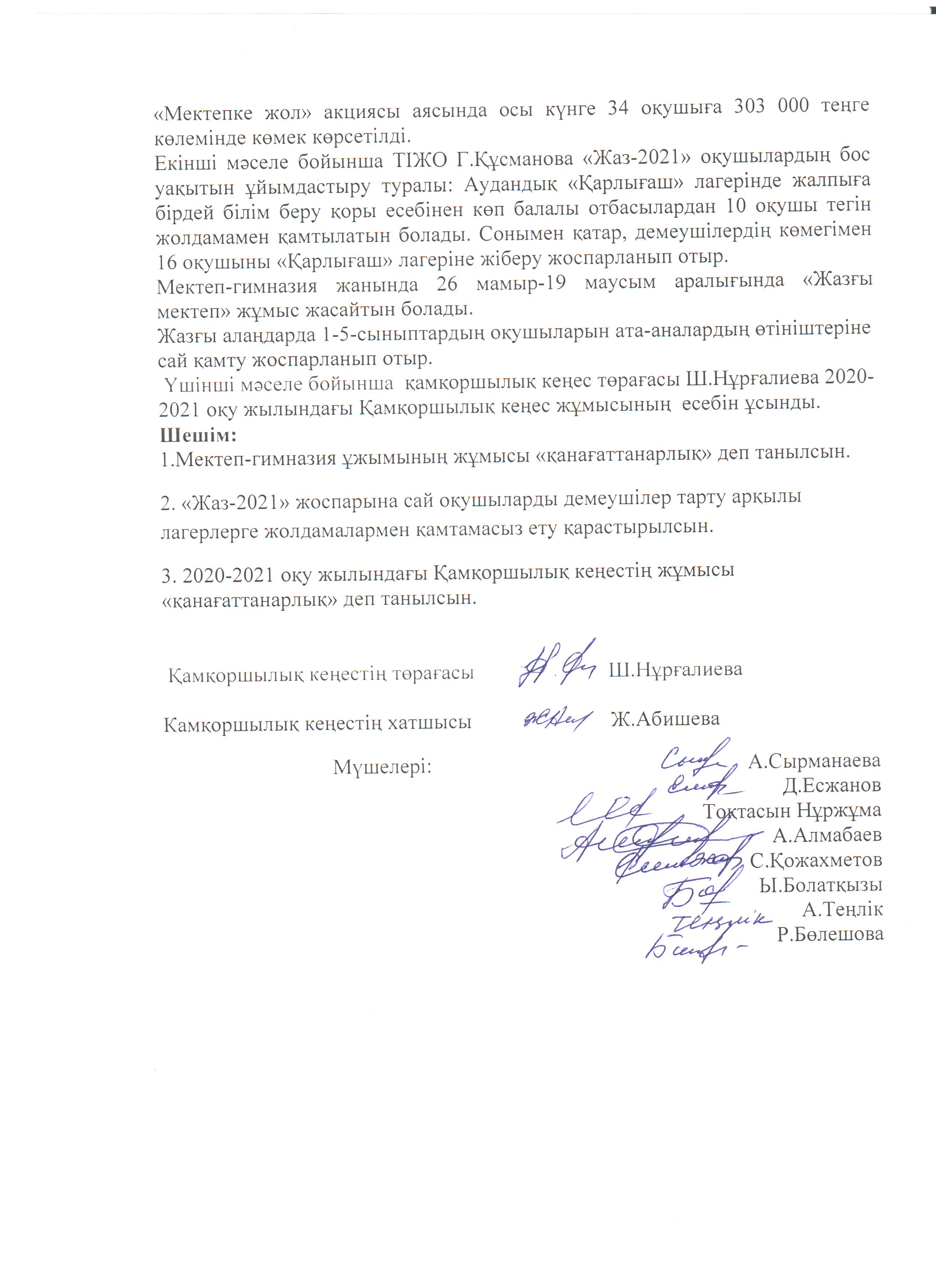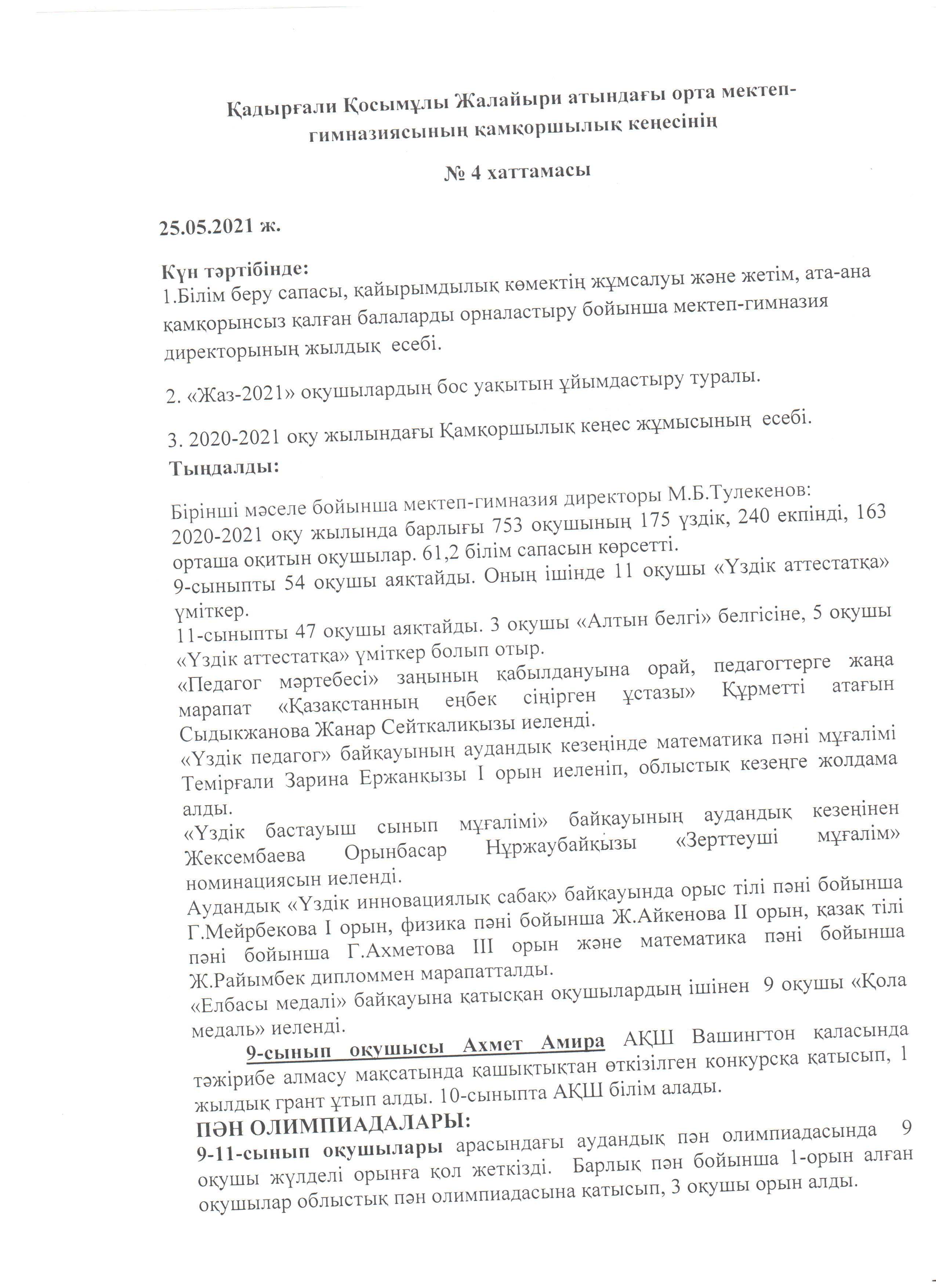 Board of Trusteesінің №4 отырысының хаттамасы » Коммунальное государственное учреждение 'Средняя школа гимназия имени Кадыргали Косымулы Жалаири'