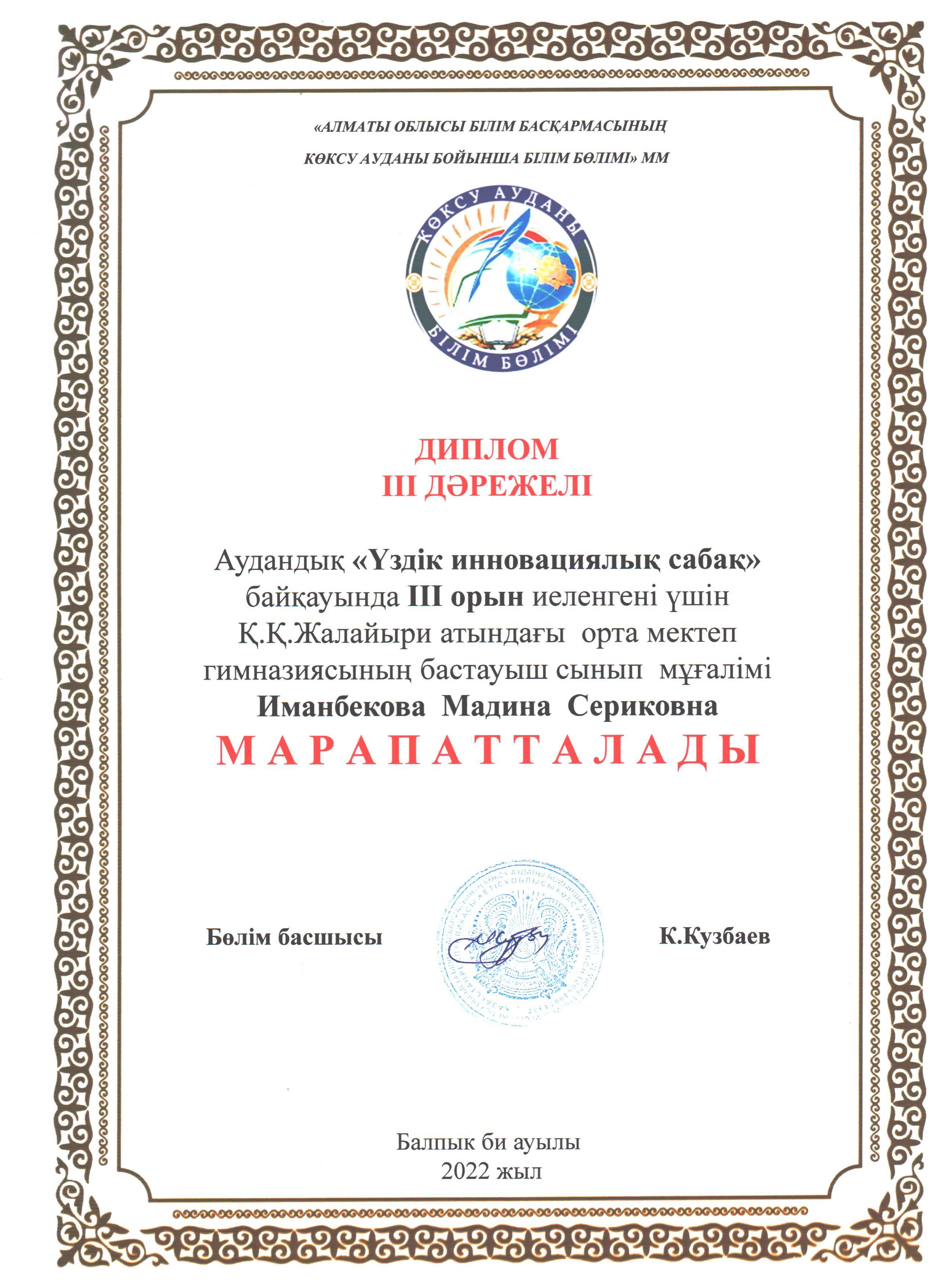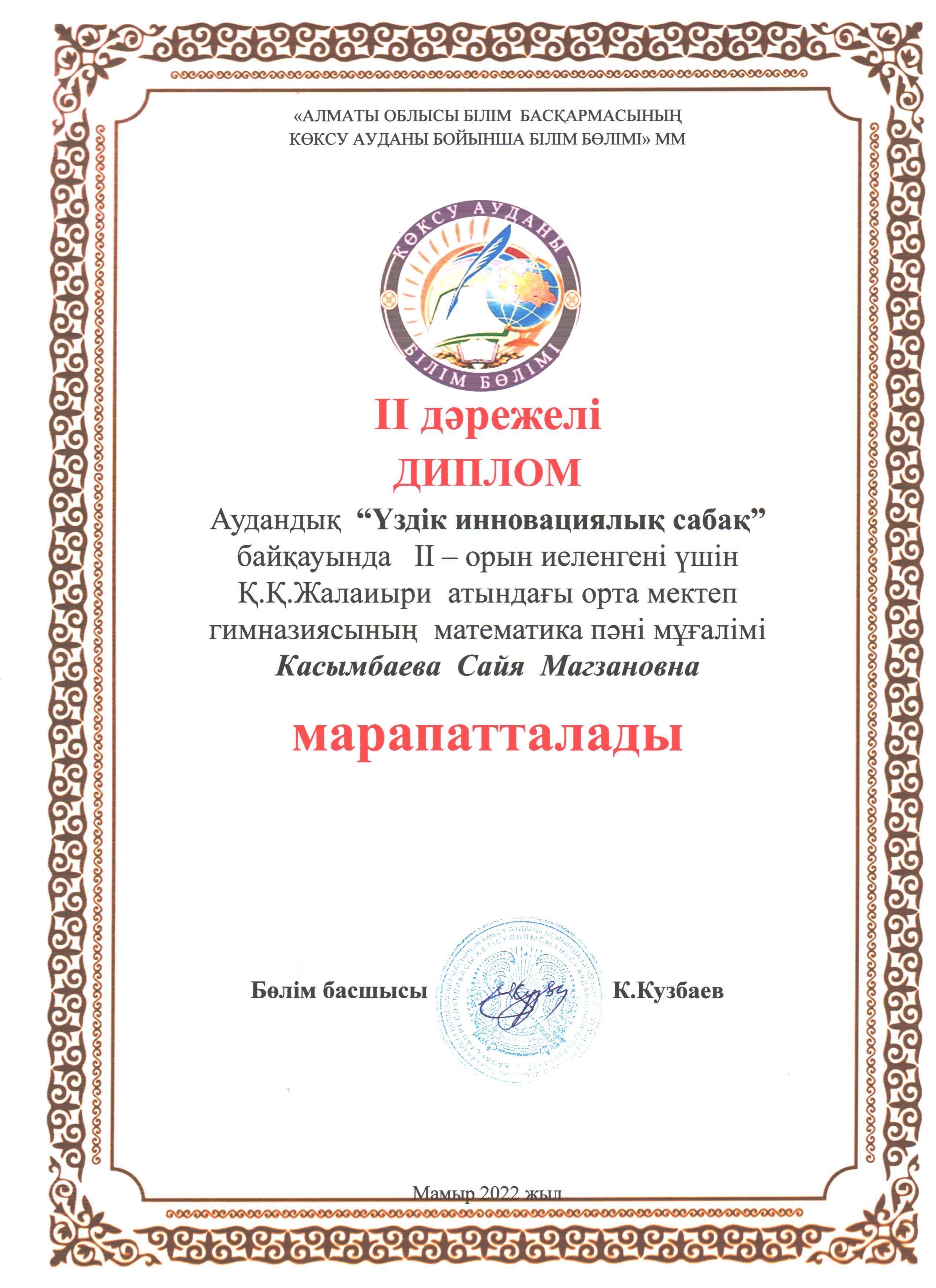 "Best инновациялық сабақ" байқауындағы мұғалімдер жетістіктері » Коммунальное государственное учреждение 'Средняя школа гимназия имени Кадыргали Косымулы Жалаири'