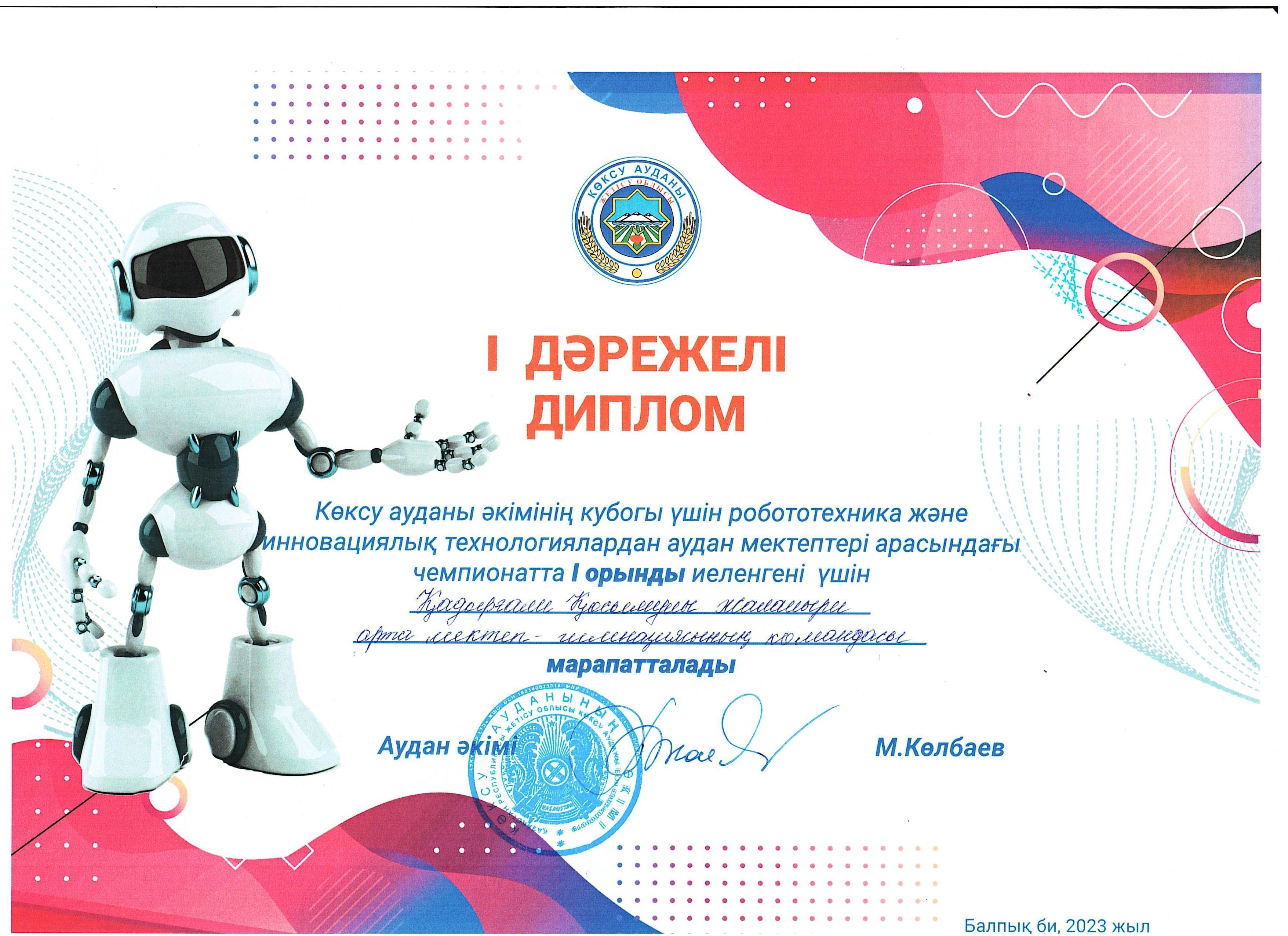 Көксу ауданы әкімінің кубогы үшін робототехника мен инновациялық технологиялардан чемпионатта мектеп-гимназия командасы І орын иеленді.Жетекшісі С.Матайбай