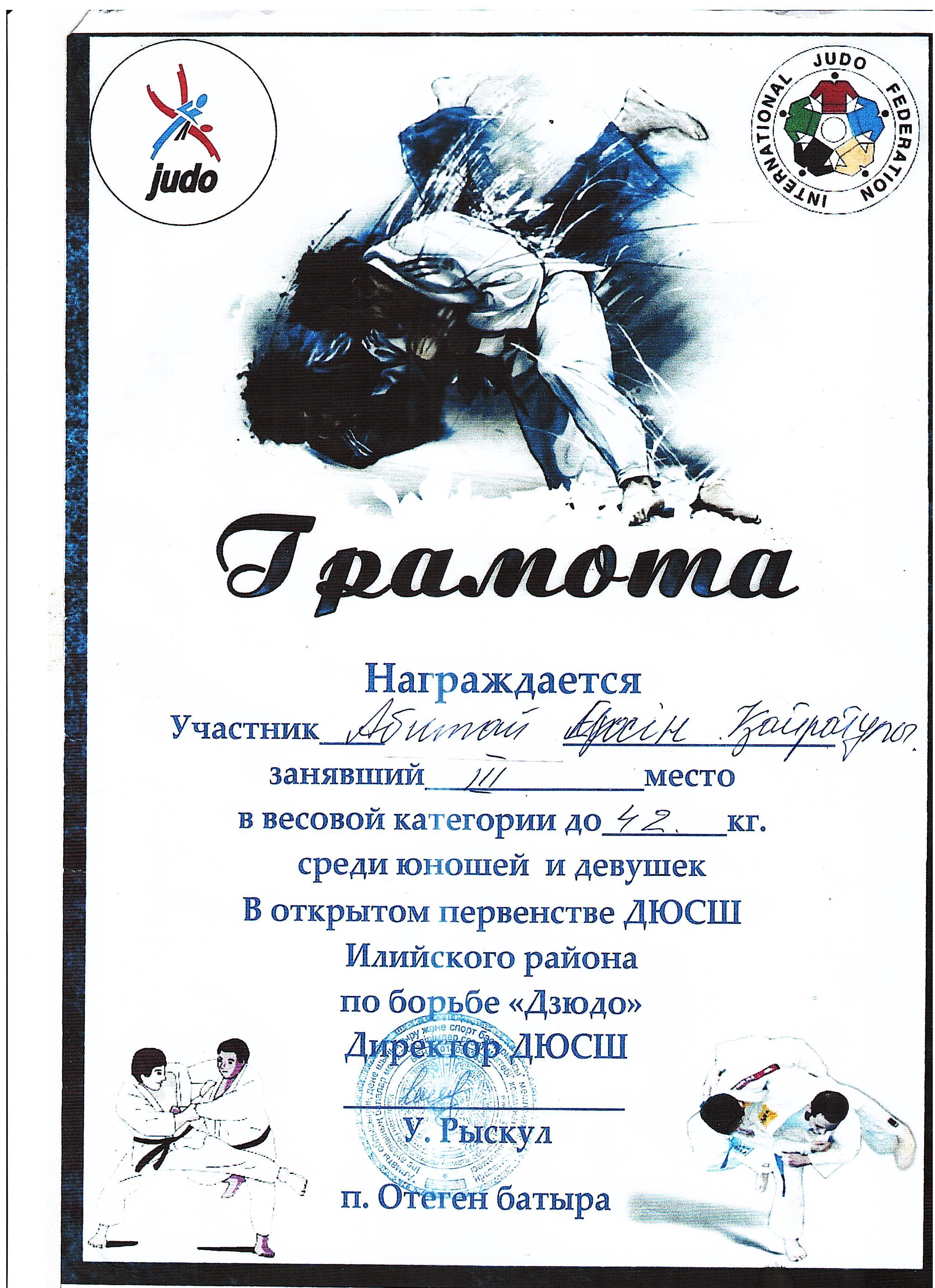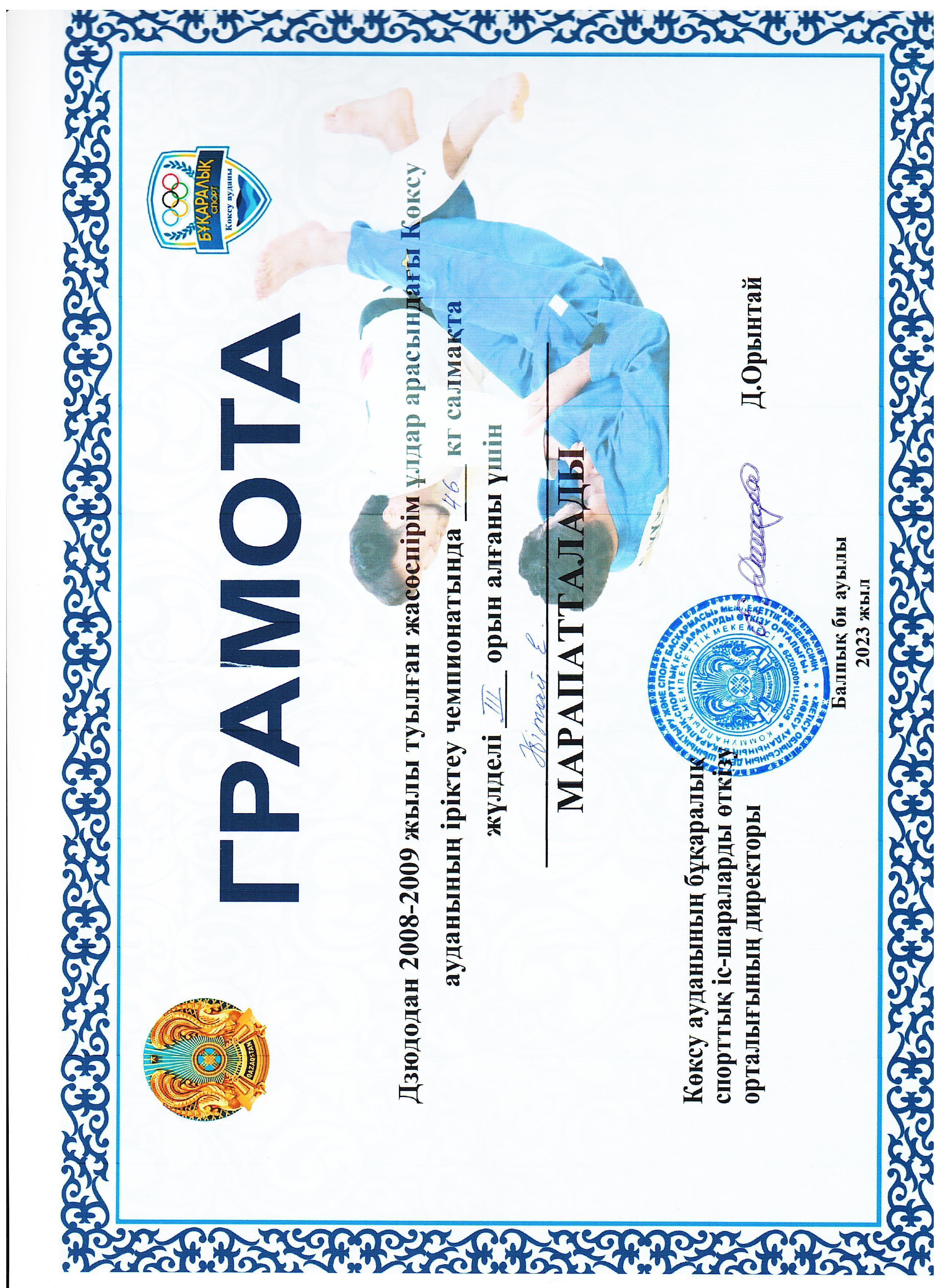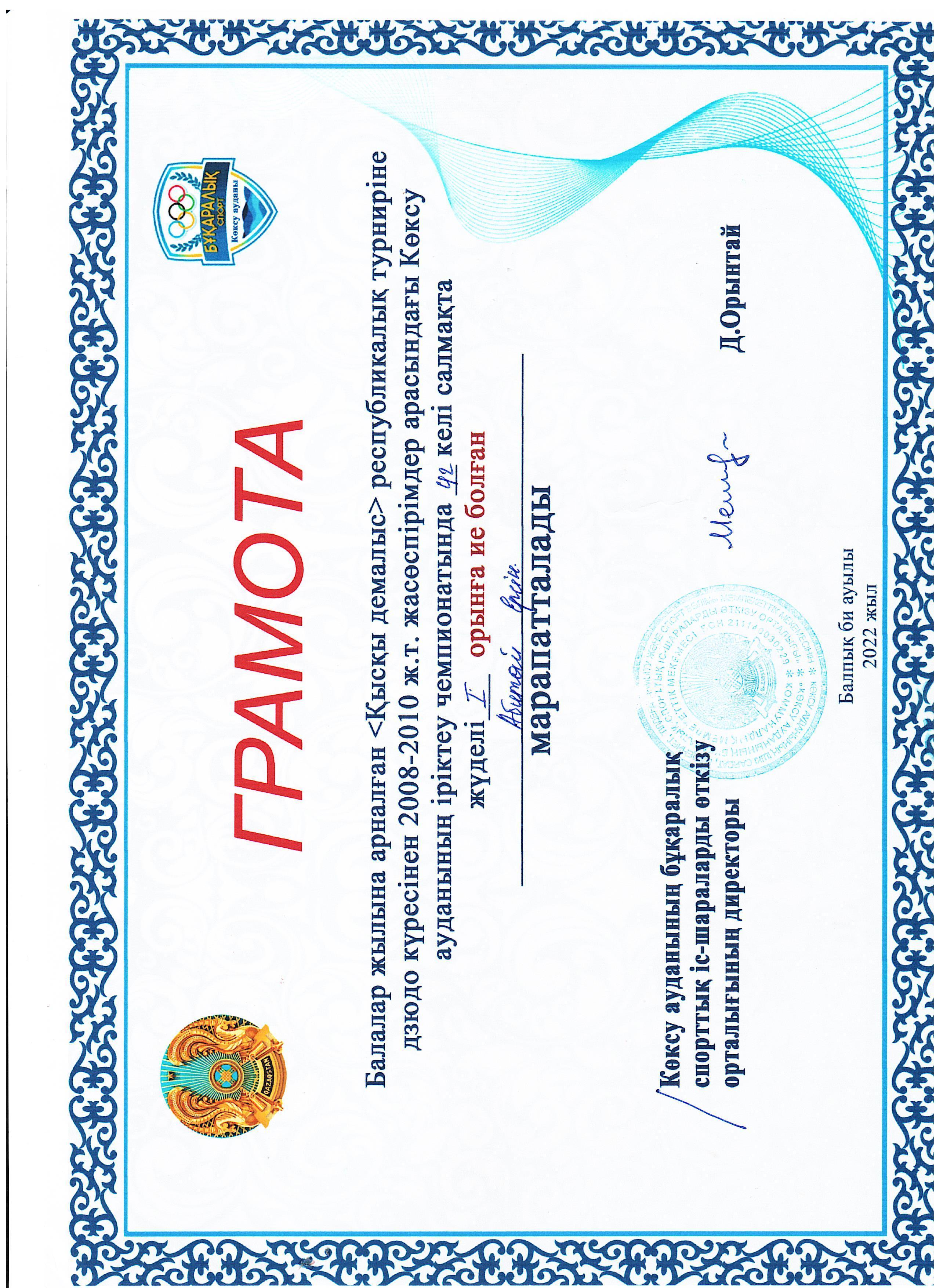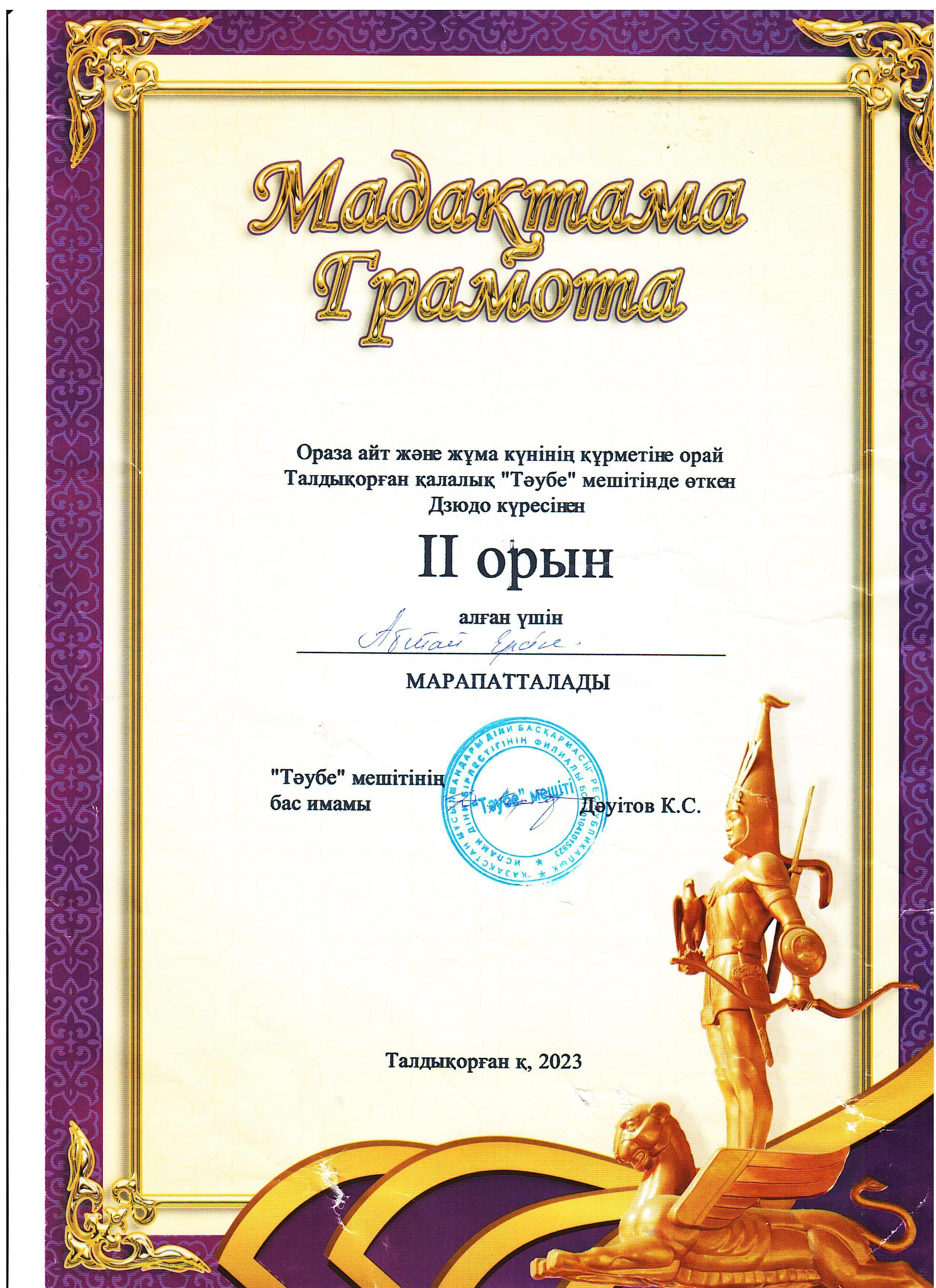 15 май 2023 0 1 2 3 4 5 7 Б сынып оқушысы Абитай Ерсіннің дзюдо күресі бойынша жетістіктері.Сынып жетекшісі Н.Мажен