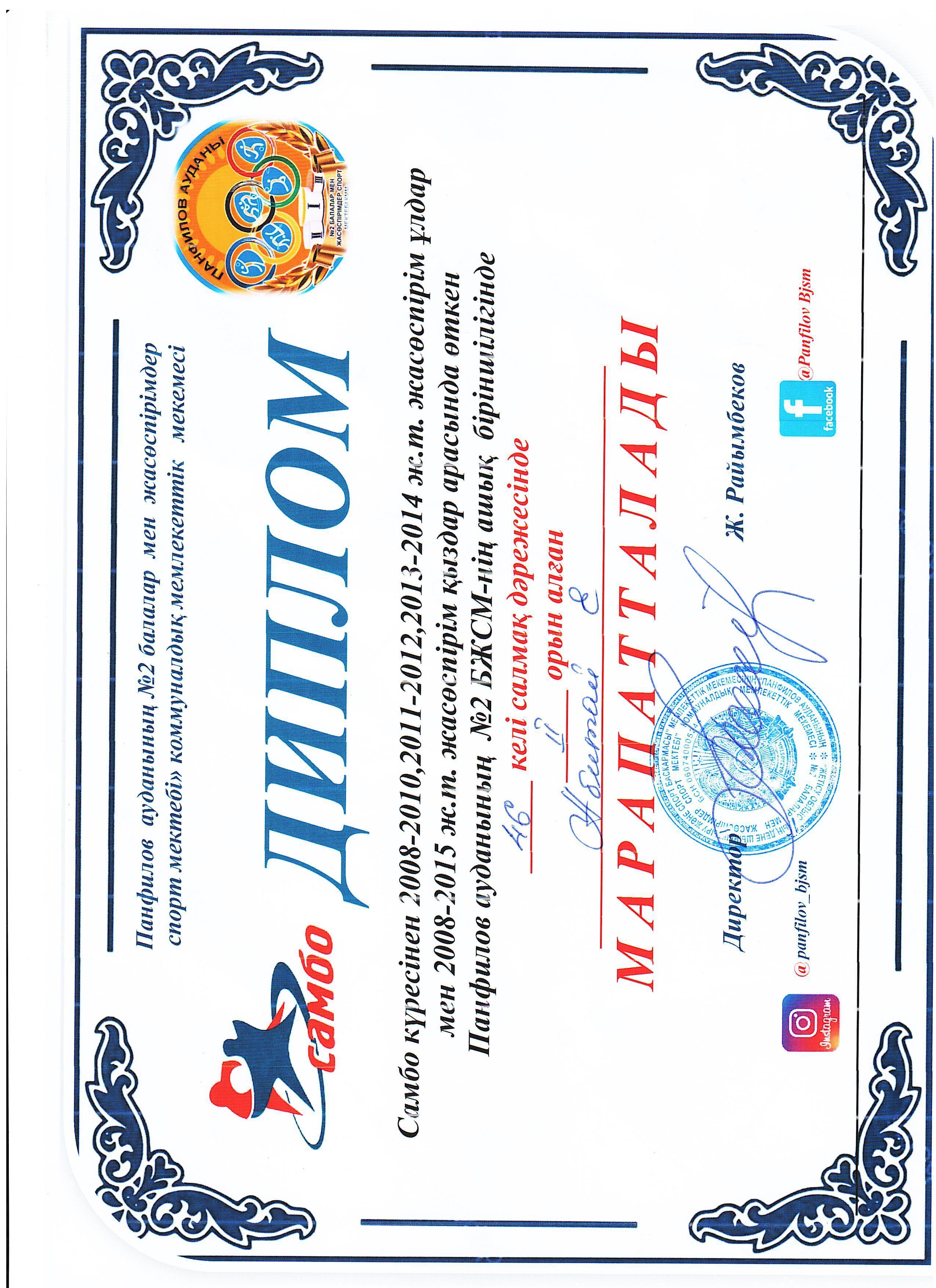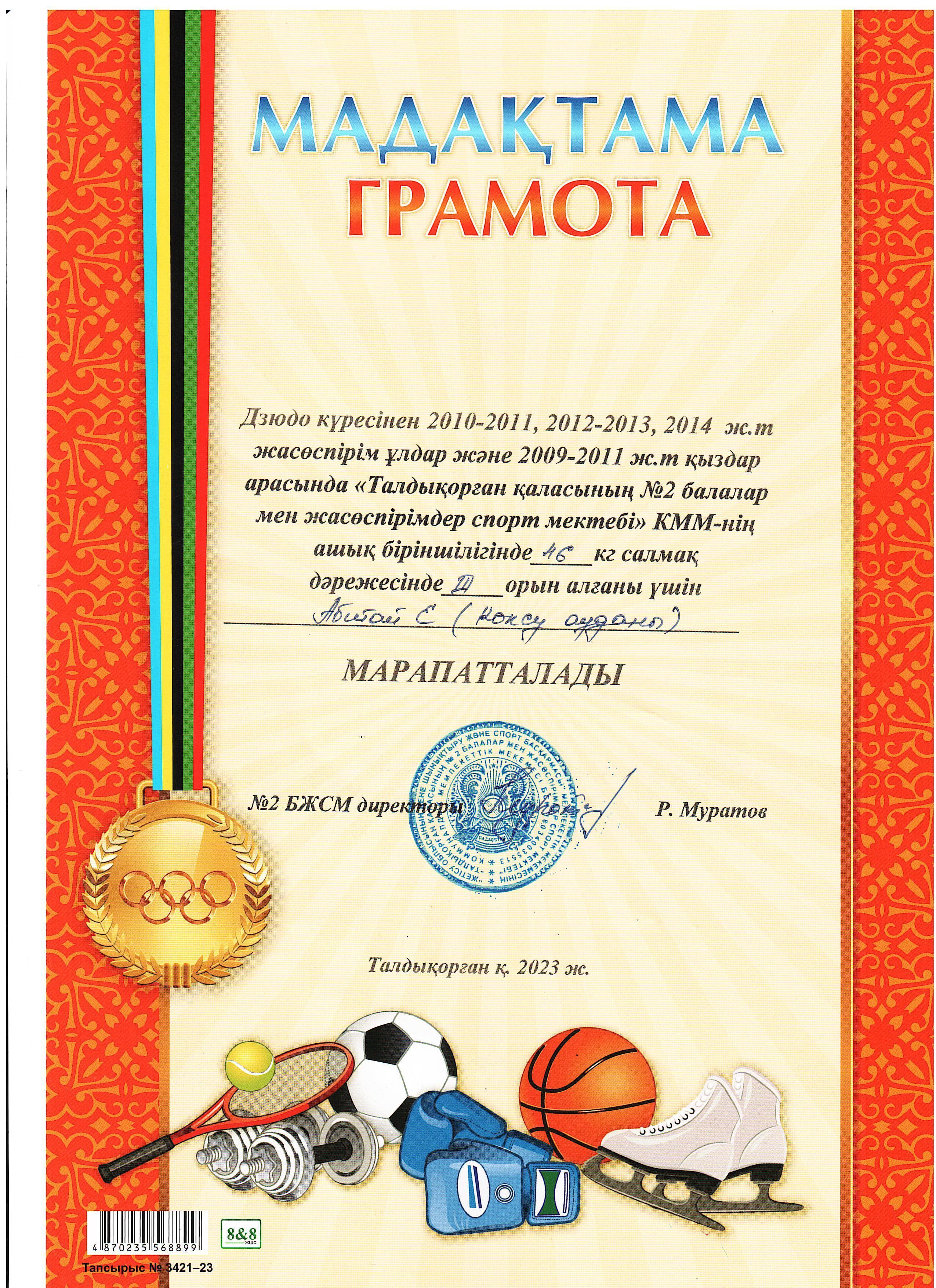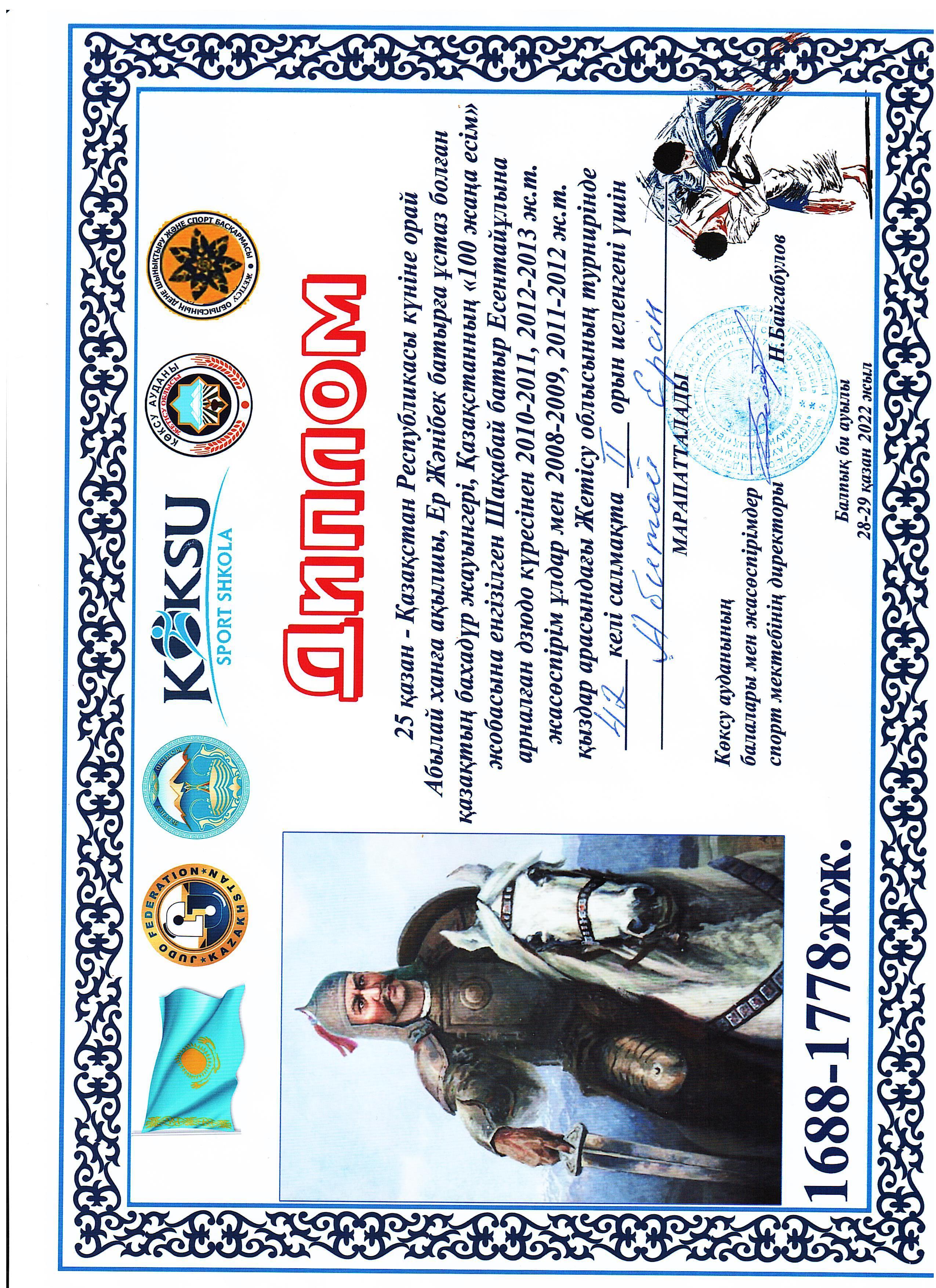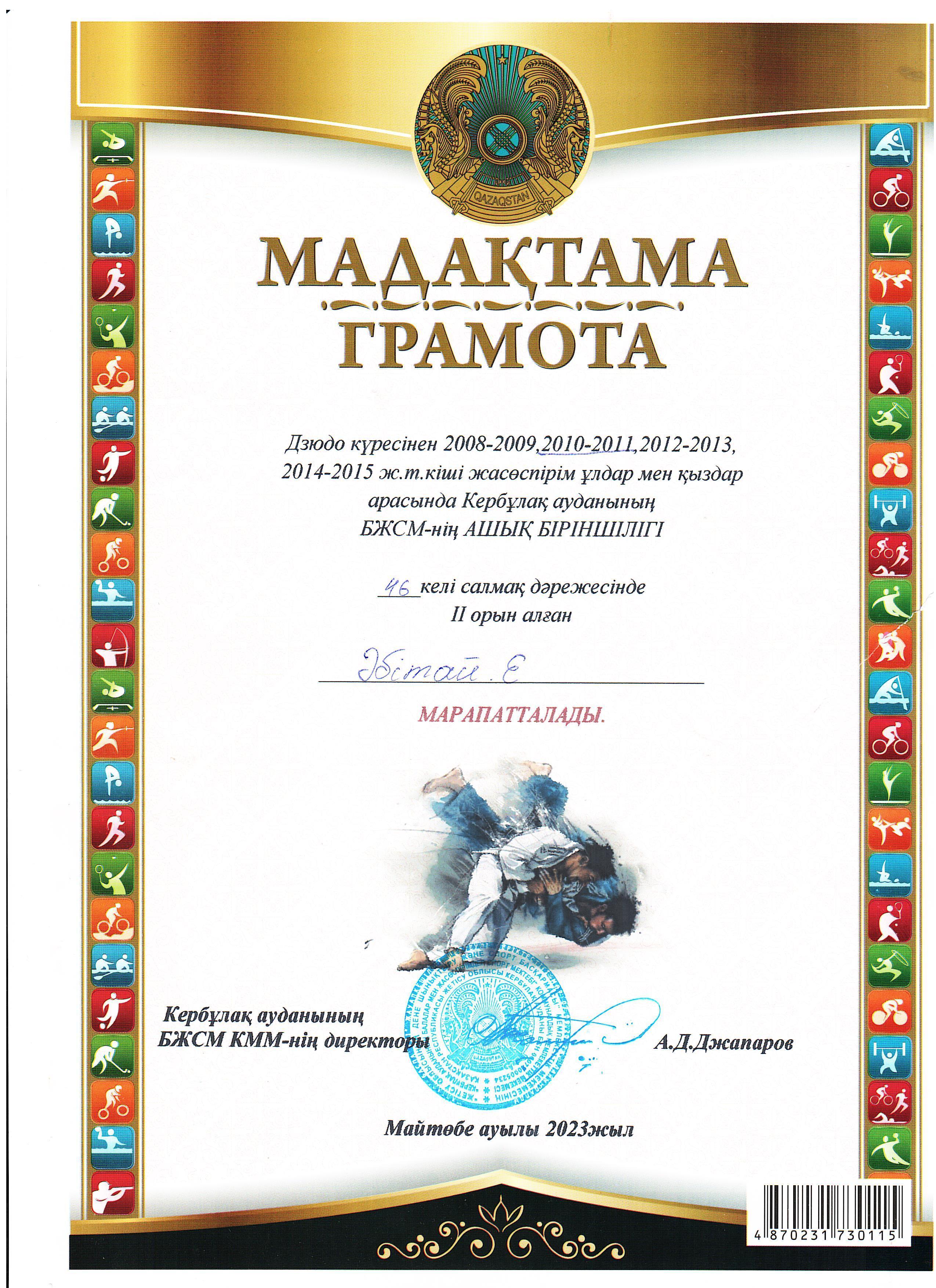 15 май 2023 0 1 2 3 4 5 7 Б сынып оқушысы Абитай Ерсіннің дзюдо күресі бойынша жетістіктері.Сынып жетекшісі Н.Мажен