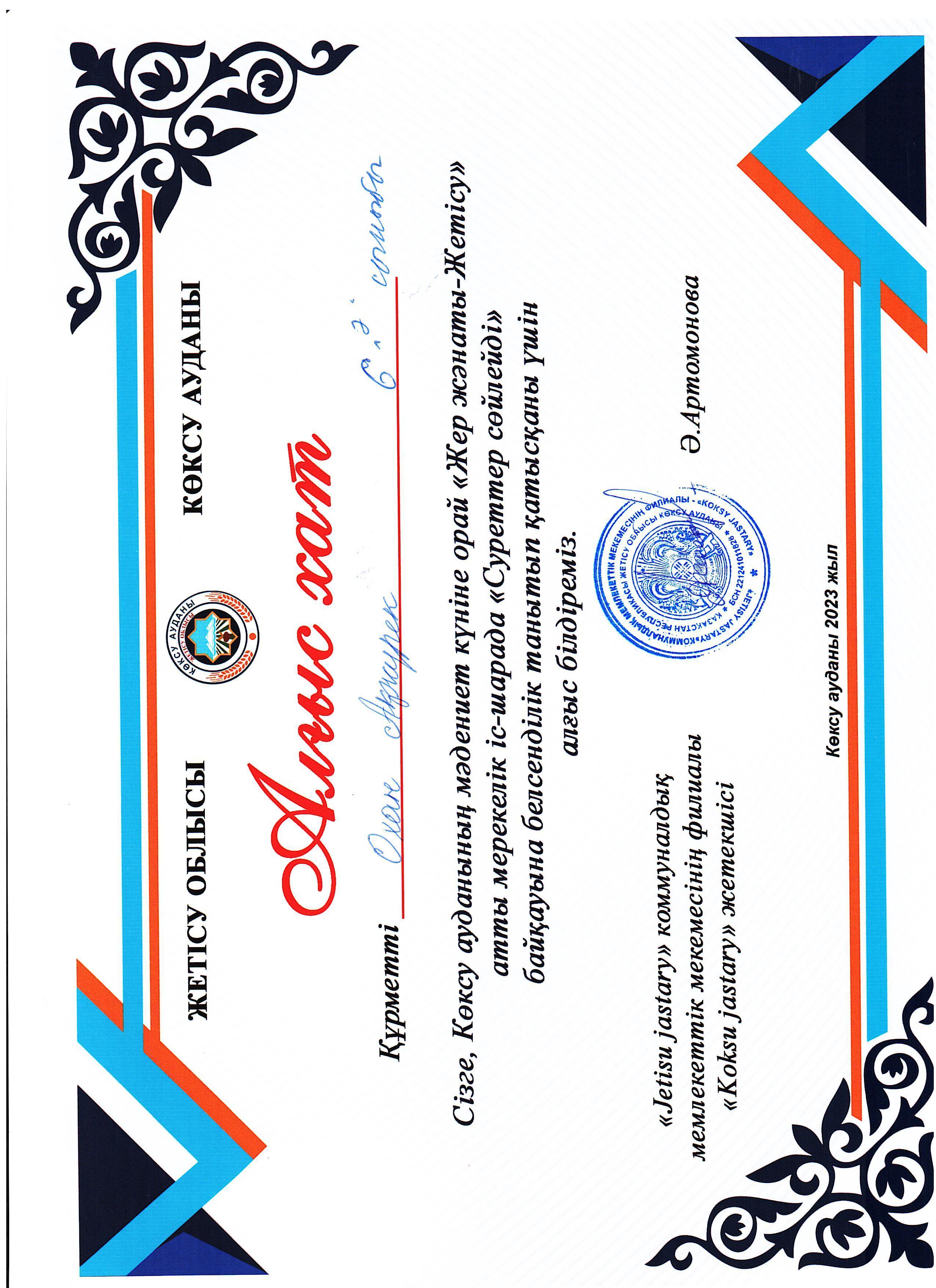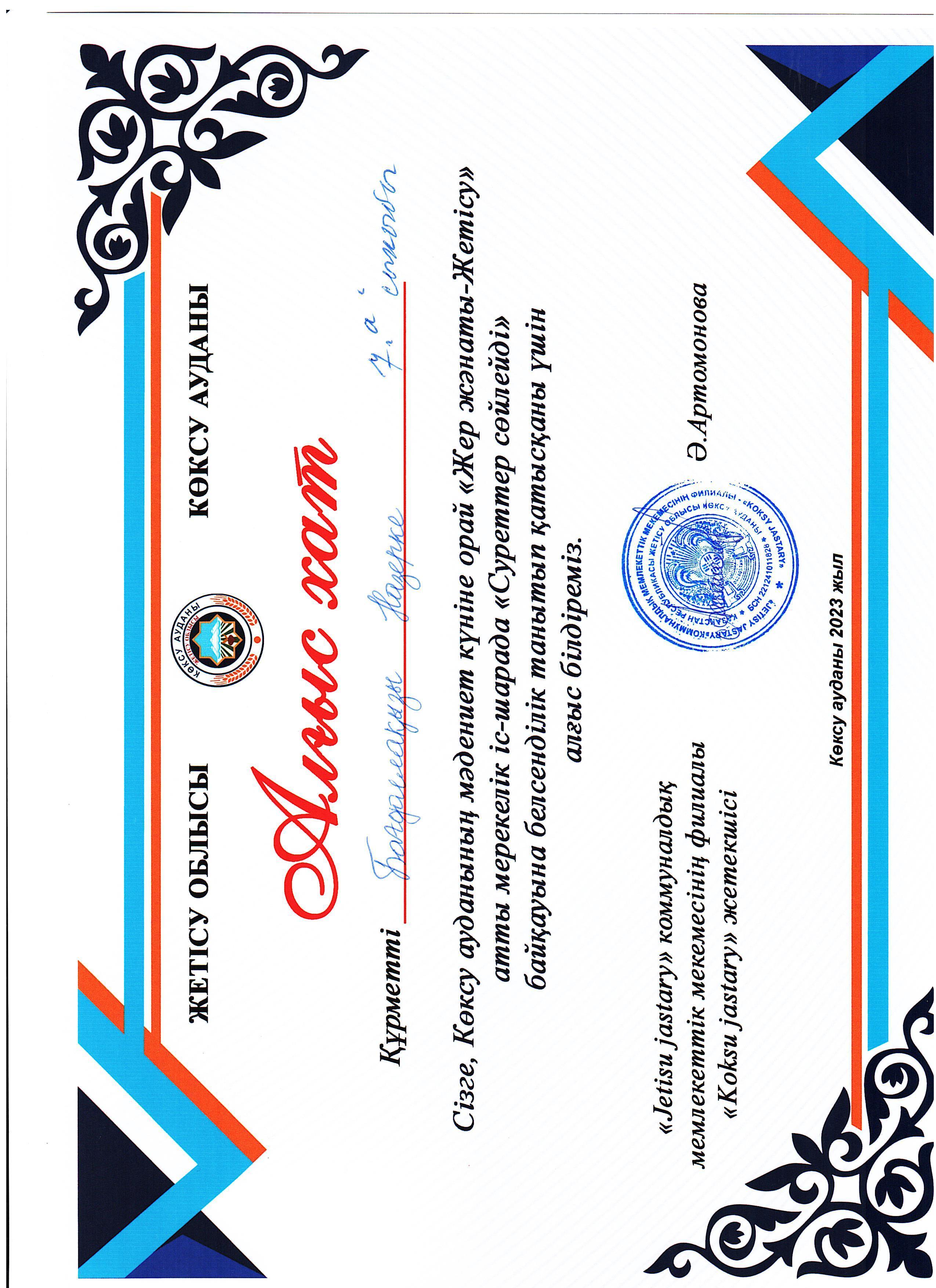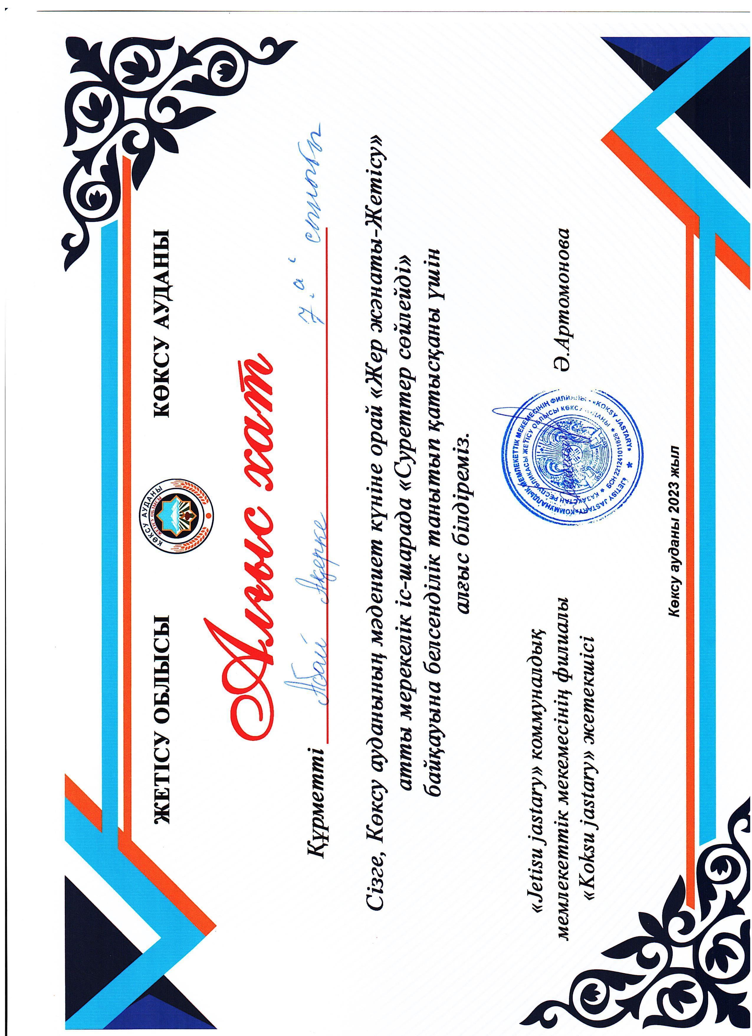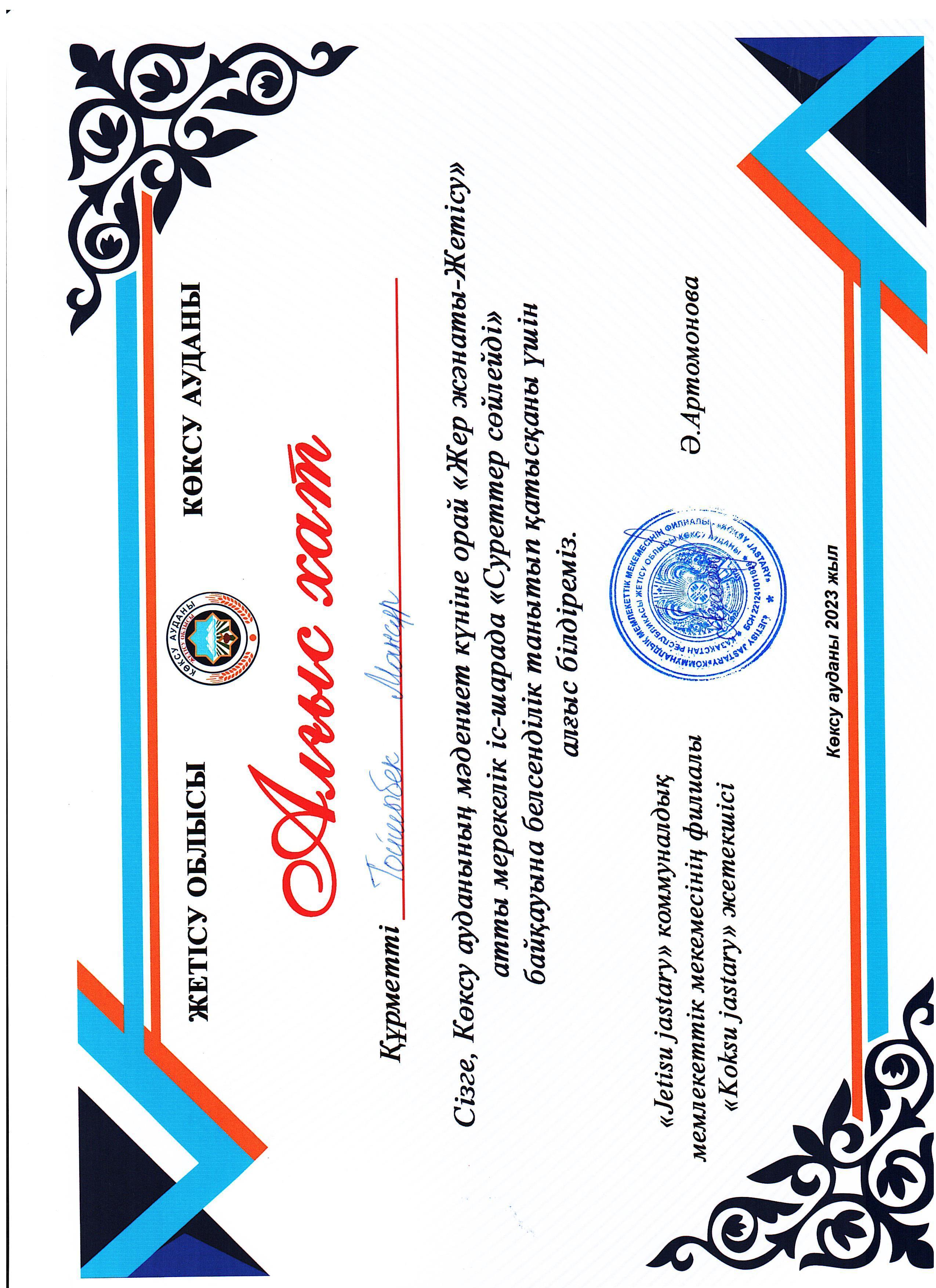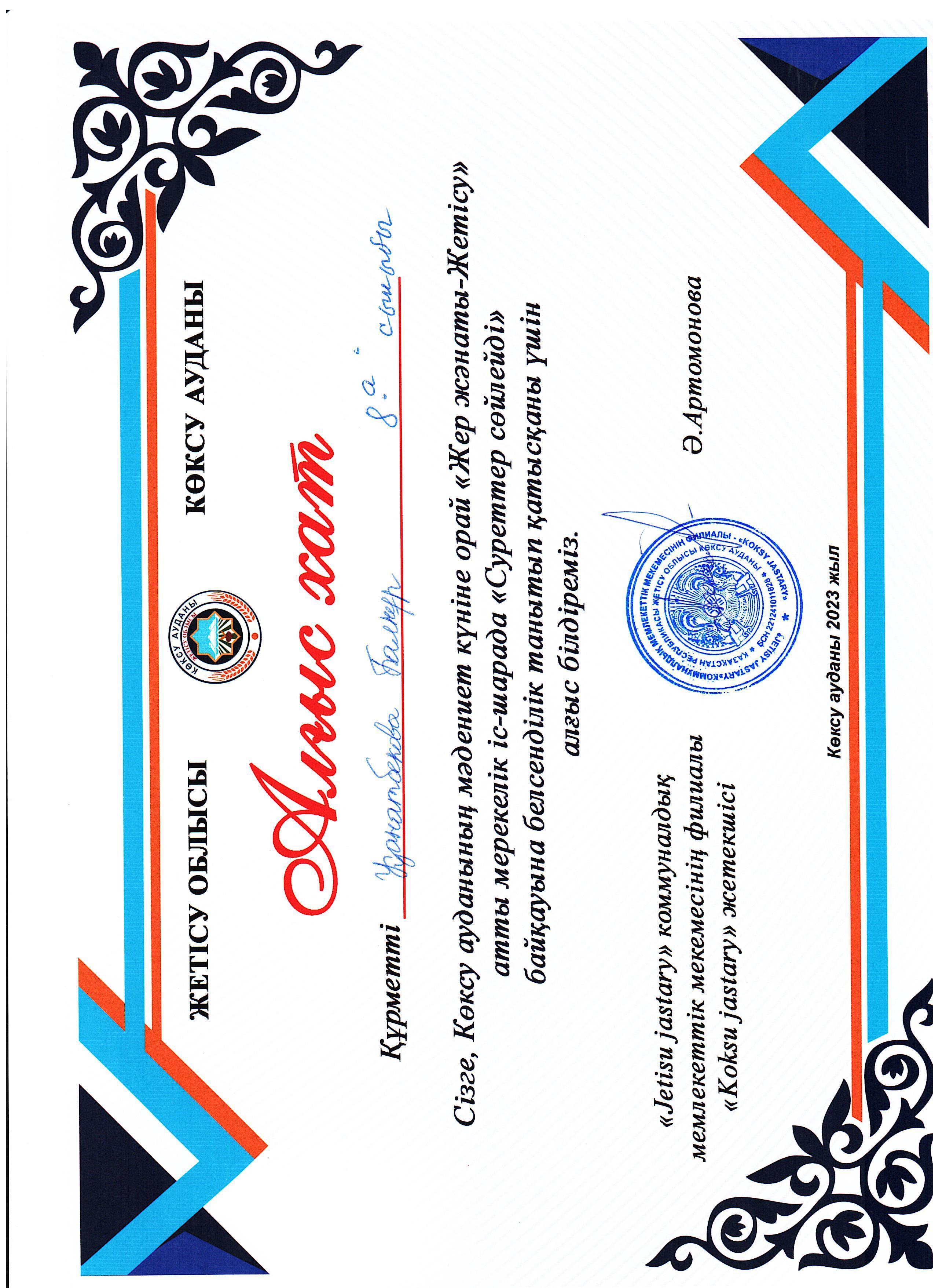 18 сентябрь 2023 0 1 2 3 4 5 Аудандық "Суреттер сөйлейді" байқауына мектеп-гимназия оқушылары белсене қатысып,Алғыс хаттар иеленді. Сынып жетекшісі М.Жапарова