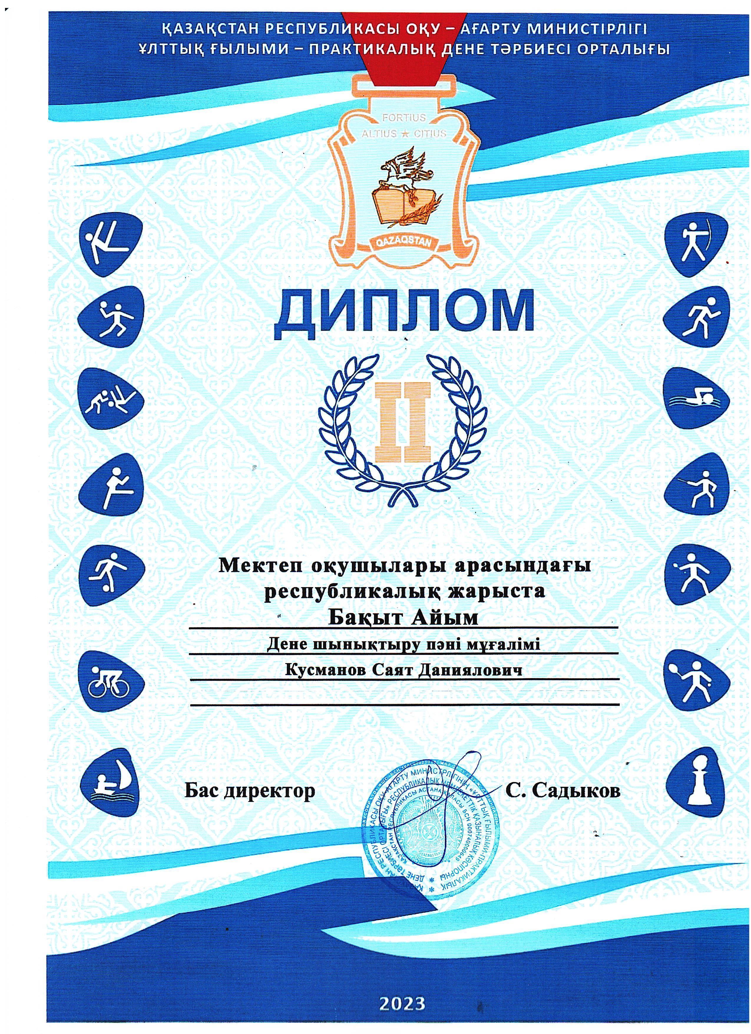 31 январь 2024 0 1 2 3 4 5 Мектеп оқушылары арасындағы республикалық жарыста оқушыларымыз диплом иеленді. Жетекшісі С.Құсманов Алғыс хат иеленді
