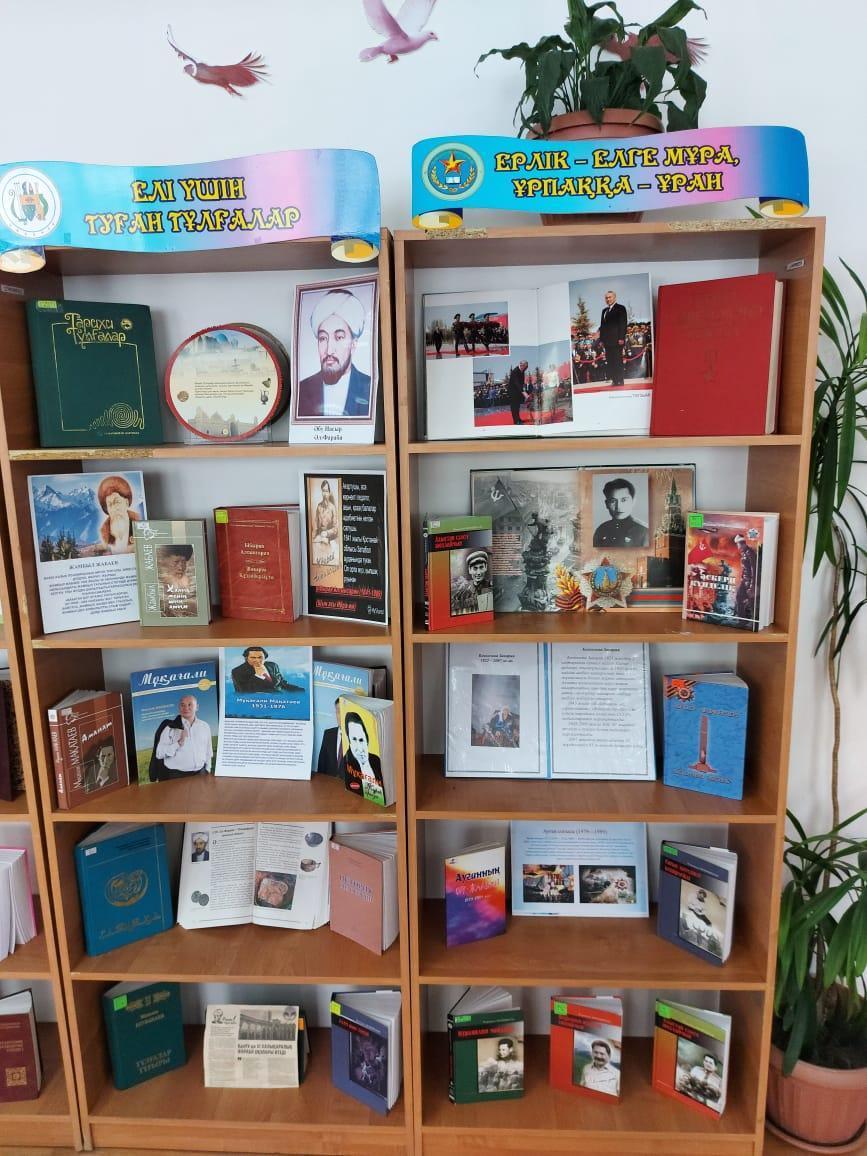 Мектеп-гимназия кітапханасында М.Мақатаевтың, Жамбыл Жабаевтың және Ыбырай Алтынсариннің өмір жолдары мен шығармаларына арналған кітаптар көрмесі безендірілді.