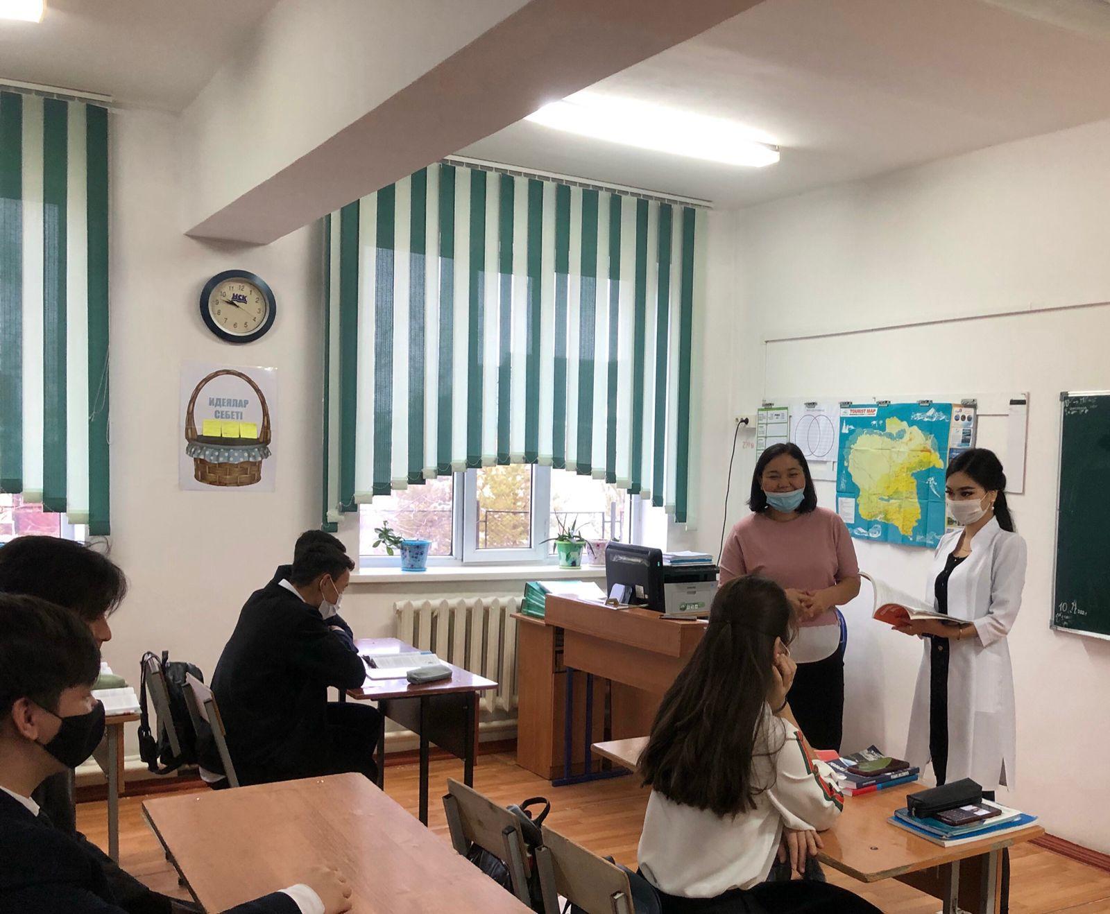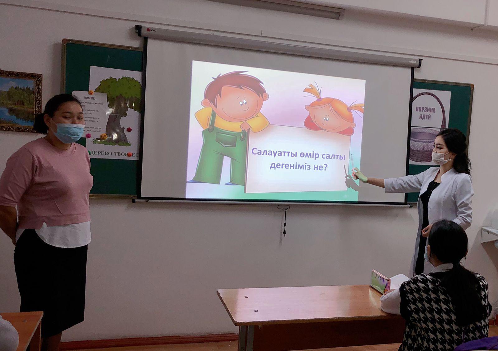 Салауатты өмір салтын сақтау туралы мектеп медбикесі кішігірім түсіндірме жұмыстарын жүргізді. Оның ішінде дұрыс тамақтану,зиянды әдеттерден алшақ болу туралы айта кетті. Оқушылар өздерін қызықтыратын сауалдарын қойып,жауап алды.