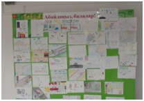 1-4 -сынып оқушылары «Жүргізуші, менің өмірімді сақта!» суреттер көрмесін безендіріп,суреттер мен жапсырмалар байқауын өткізіп акцияға белсенді түрде өз үлестерін қосты.