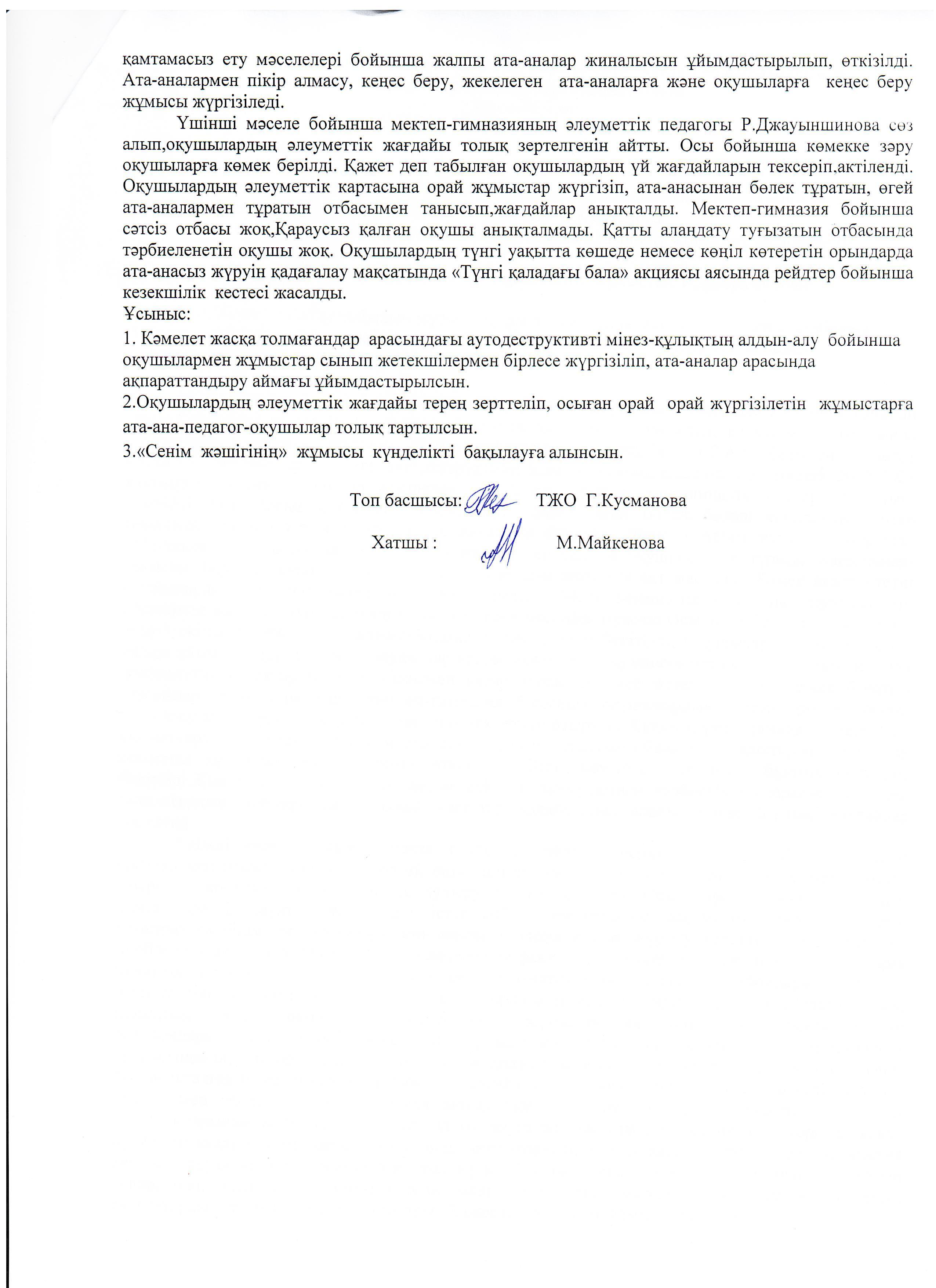 "Жедел "анықтау тобының №1 отырысының хаттамасы » Коммунальное государственное учреждение 'Средняя школа гимназия имени Кадыргали Косымулы Жалаири'