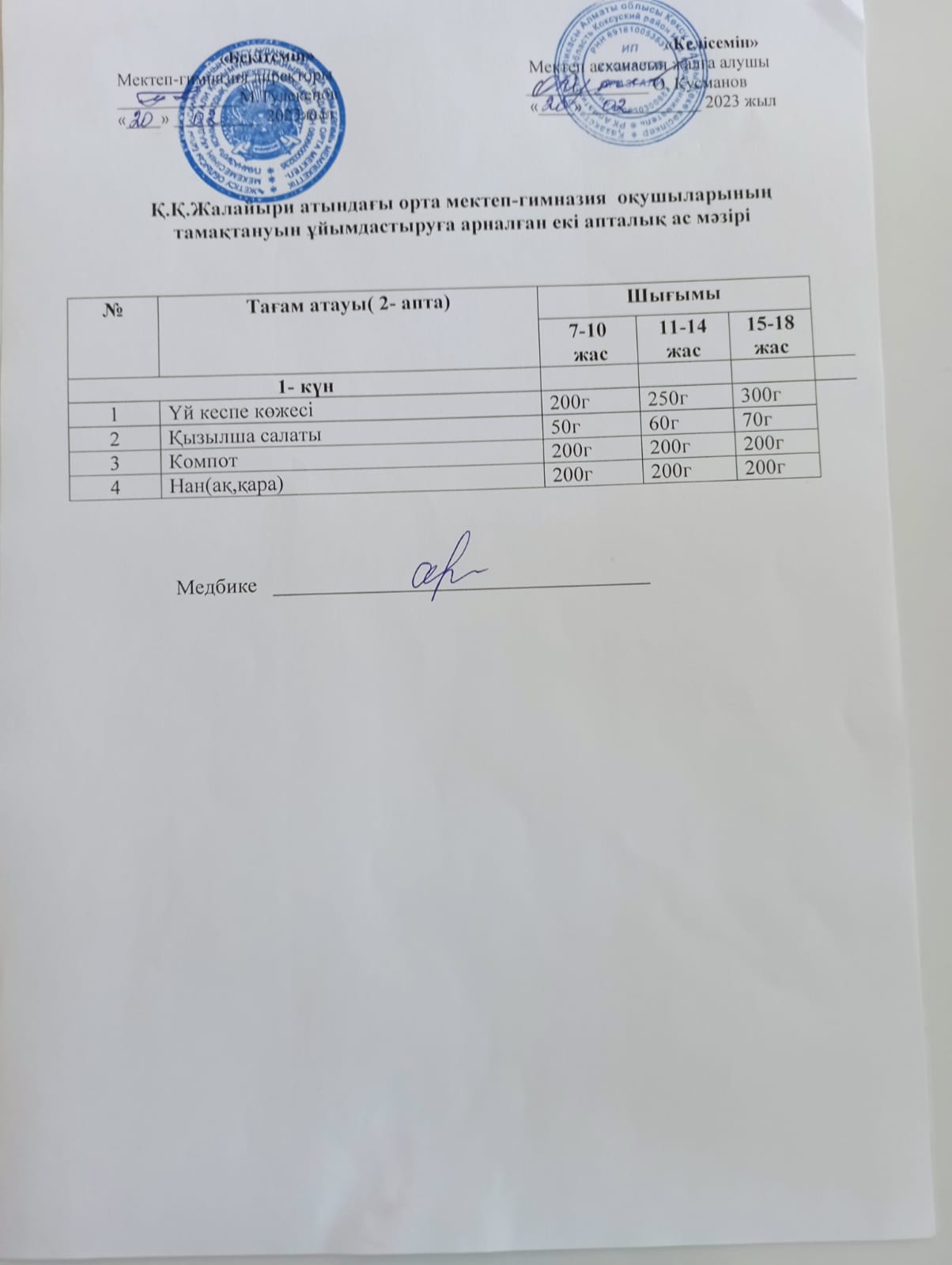ІІ- апта Ас мәзірі » Коммунальное государственное учреждение 'Средняя школа гимназия имени Кадыргали Косымулы Жалаири'
