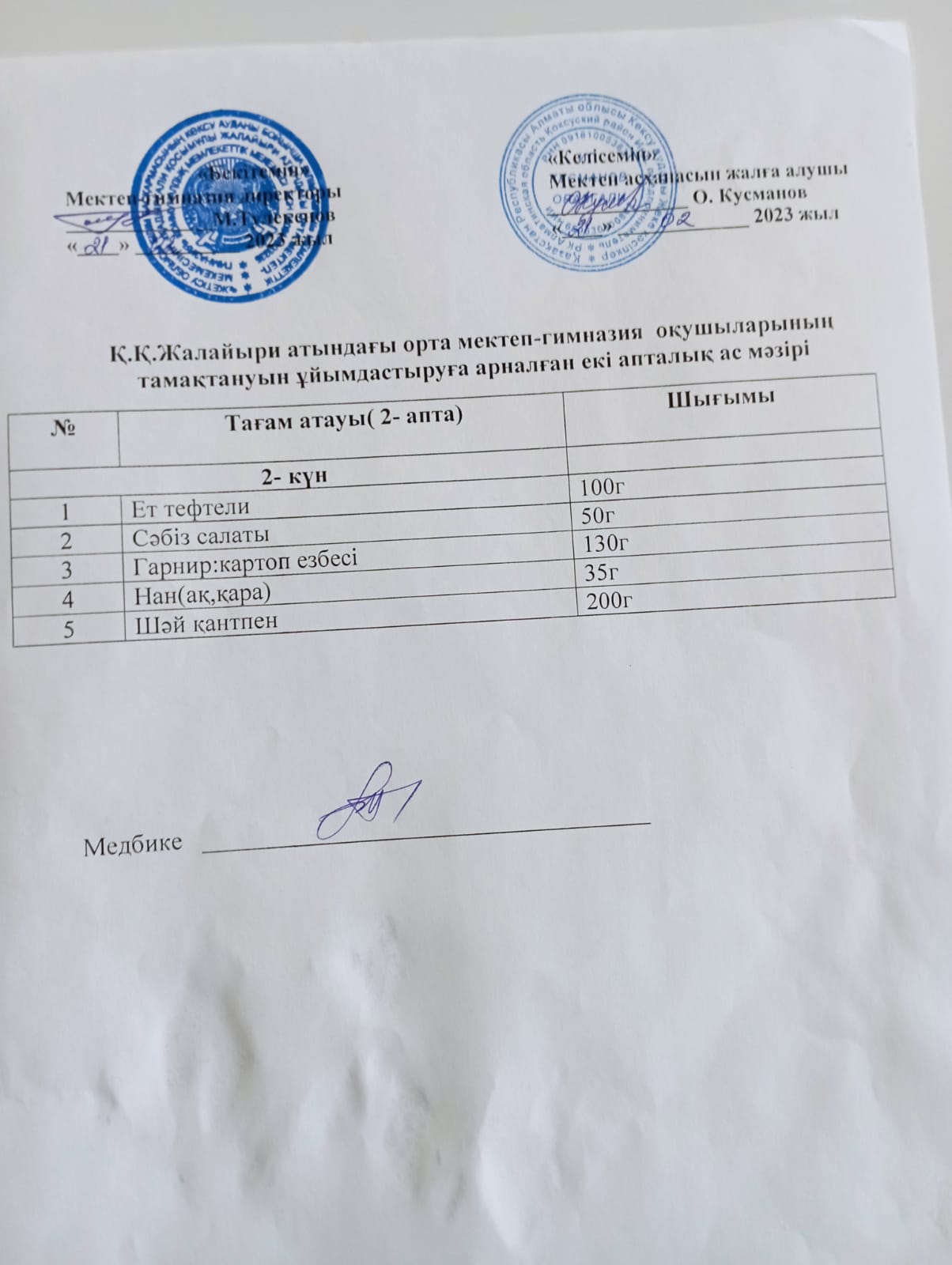 ІІ- апта Ас мәзірі » Коммунальное государственное учреждение 'Средняя школа гимназия имени Кадыргали Косымулы Жалаири'