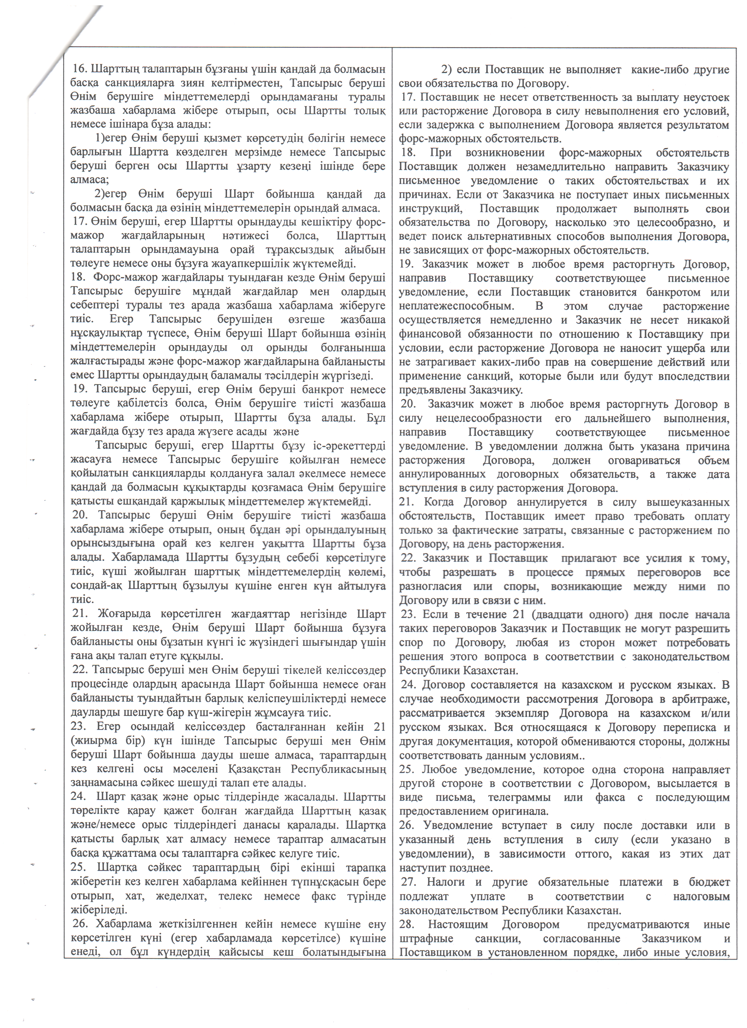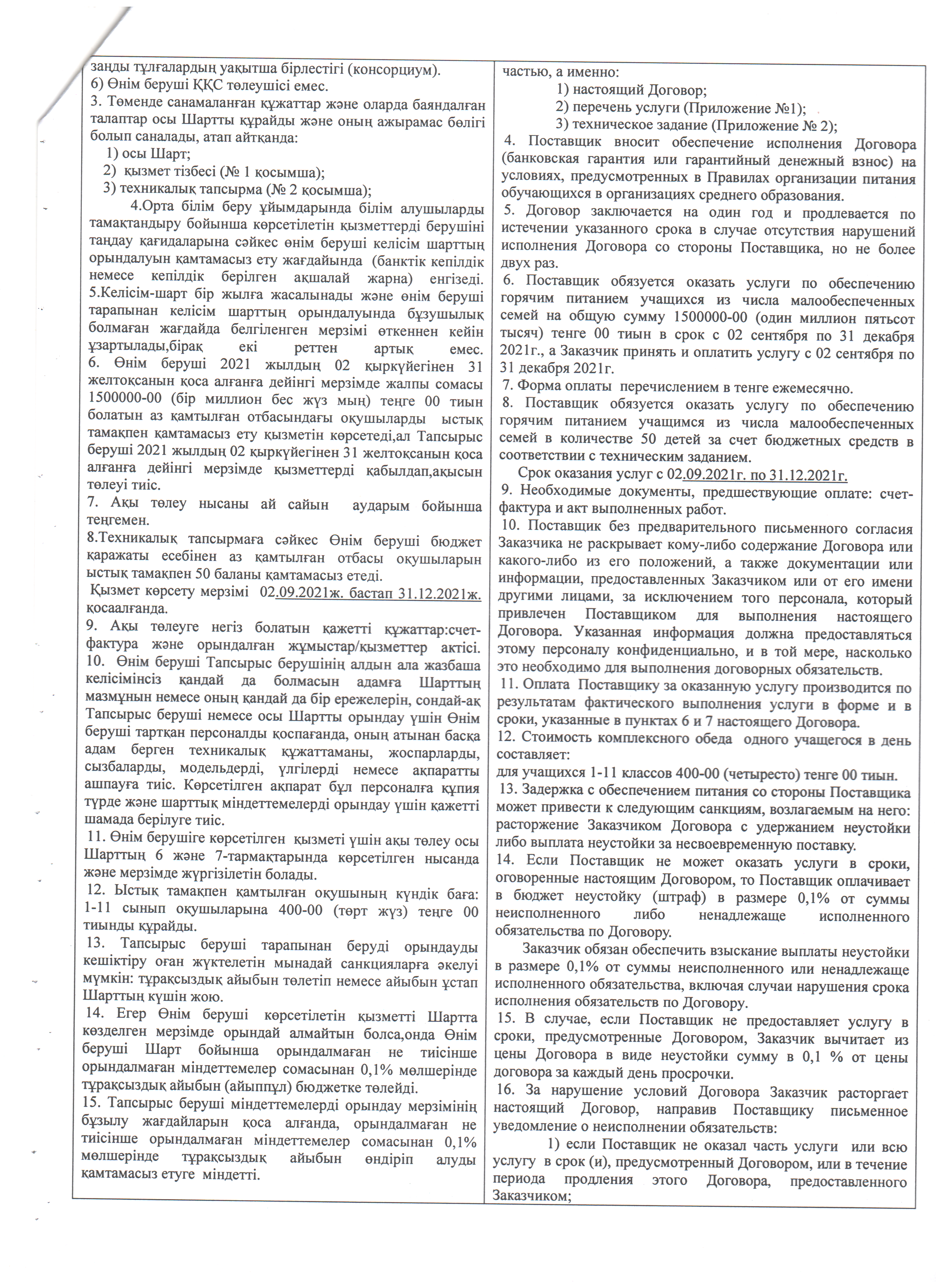 » » Оқушыларды тамақтандыруды ұйымдастыру бойынша қызмет көрсету туралы№19 үлгілік шарт