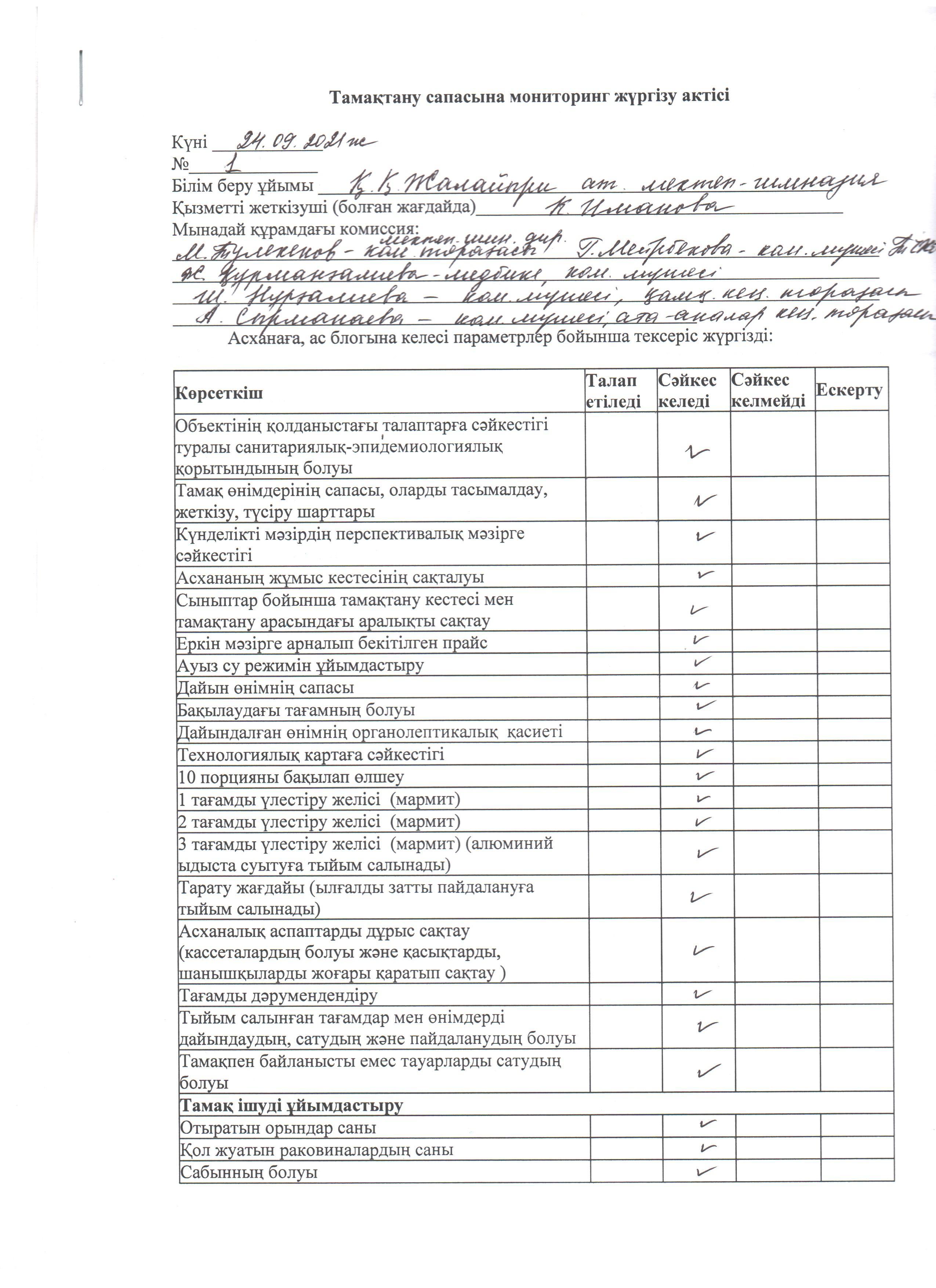 №1 Мониторинг актісі 24.09.2021 ж. » Коммунальное государственное учреждение 'Средняя школа гимназия имени Кадыргали Косымулы Жалаири'