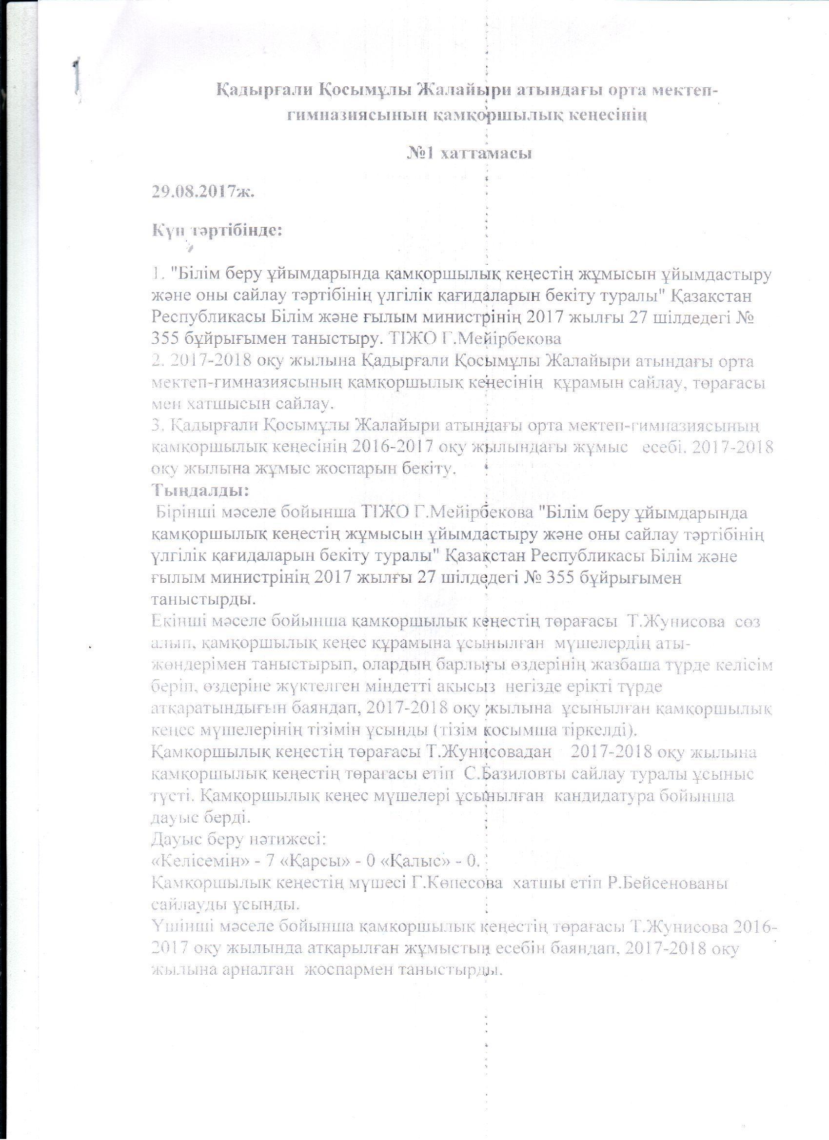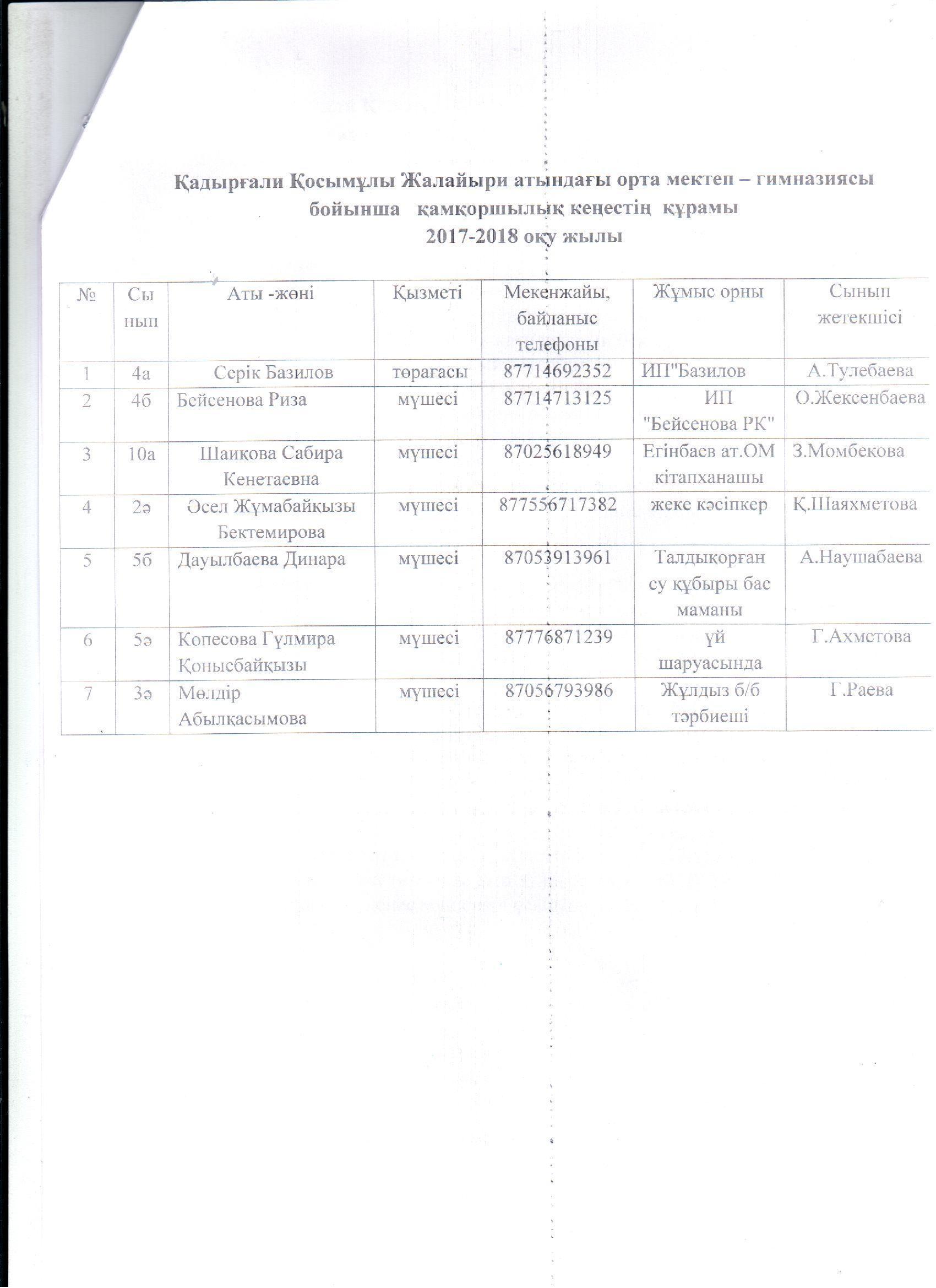 Қамқоршылық кеңесінің жұмысы » Коммунальное государственное учреждение 'Средняя школа гимназия имени Кадыргали Косымулы Жалаири'