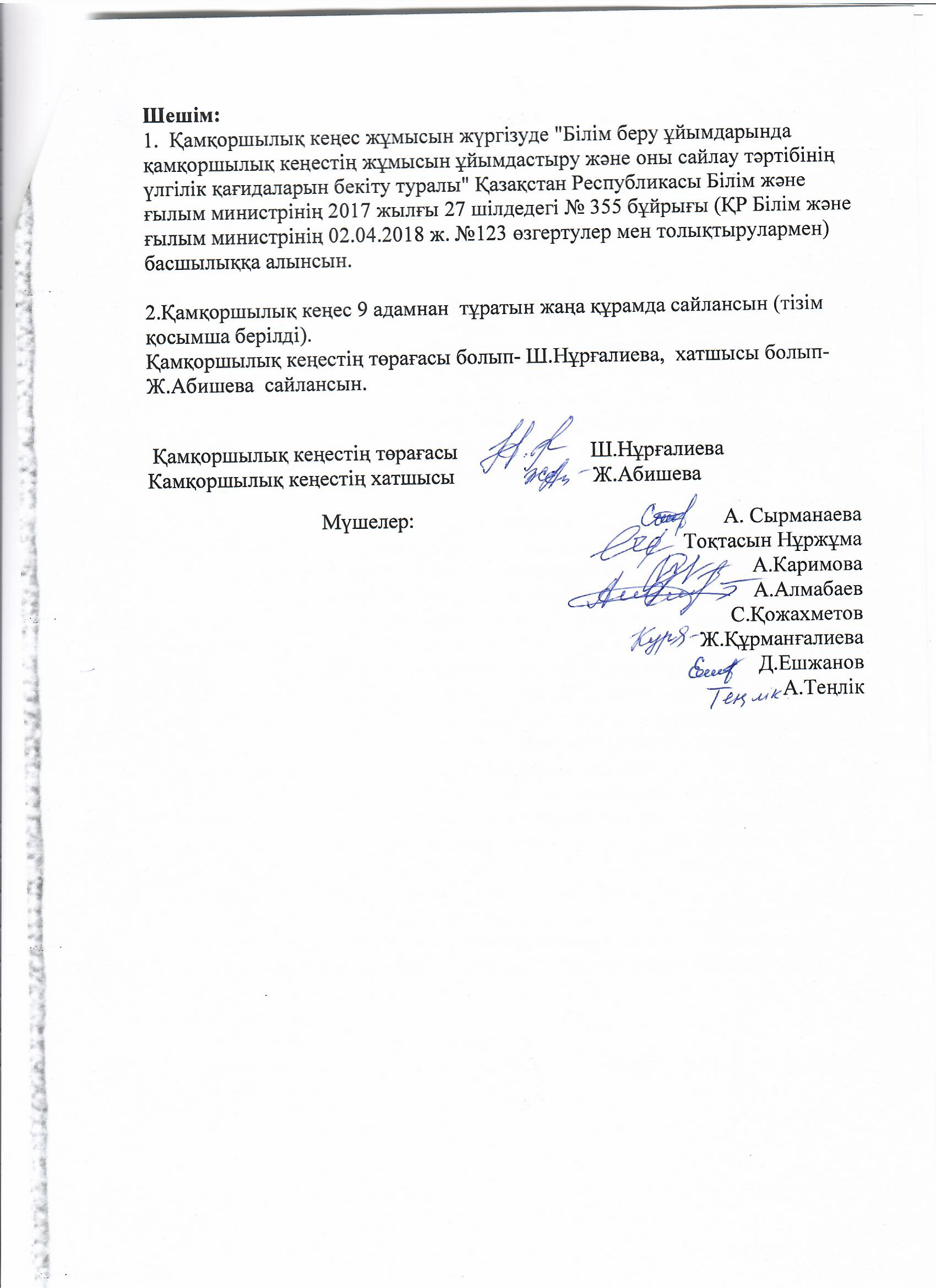 06 январь 2020 0 1 2 3 4 5 Қадырғали Қосымұлы Жалайыри атындағы орта мектеп-гимназиясы қамқоршылық кеңесінің №1 ХАТТАМАСЫ