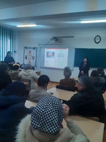 Ата-аналар арасында педагог-психологтар «Құрал мен құндылық» тақырыбында кеңес беру жұмысын жүргізді. Негізгі мақсаты: білім мен тәрбие оған кімдер жауапты екендігін түсіндіру.Бала бойындағы құндылықтарды қалыптастыру ата-ананың басты міндеті адамның интелектісін дамытатындығы туралы айтты.Осы мәселеге байланысты ата –аналармен пікірлесті,ойын-жаттығулар жүргізіді.