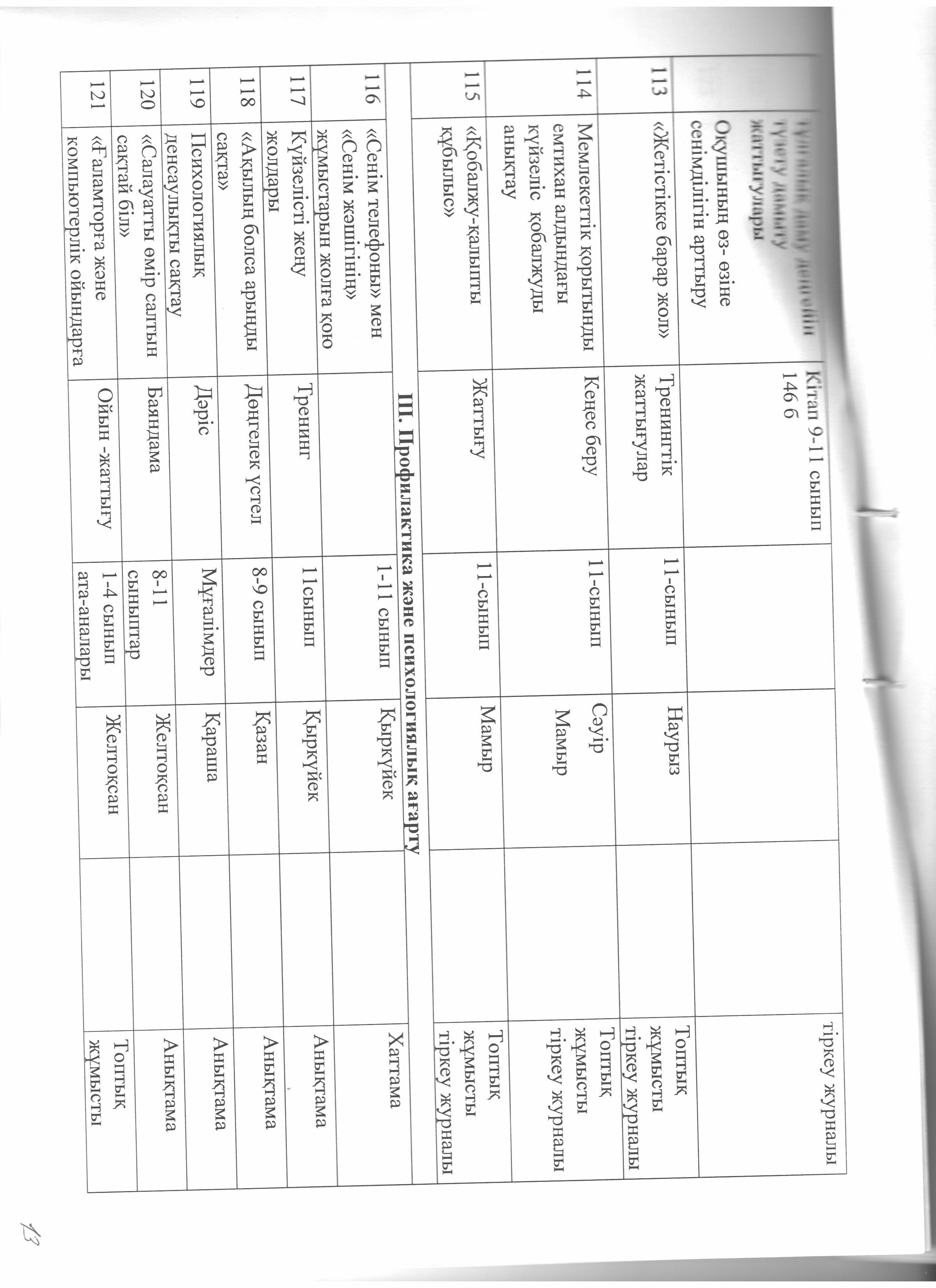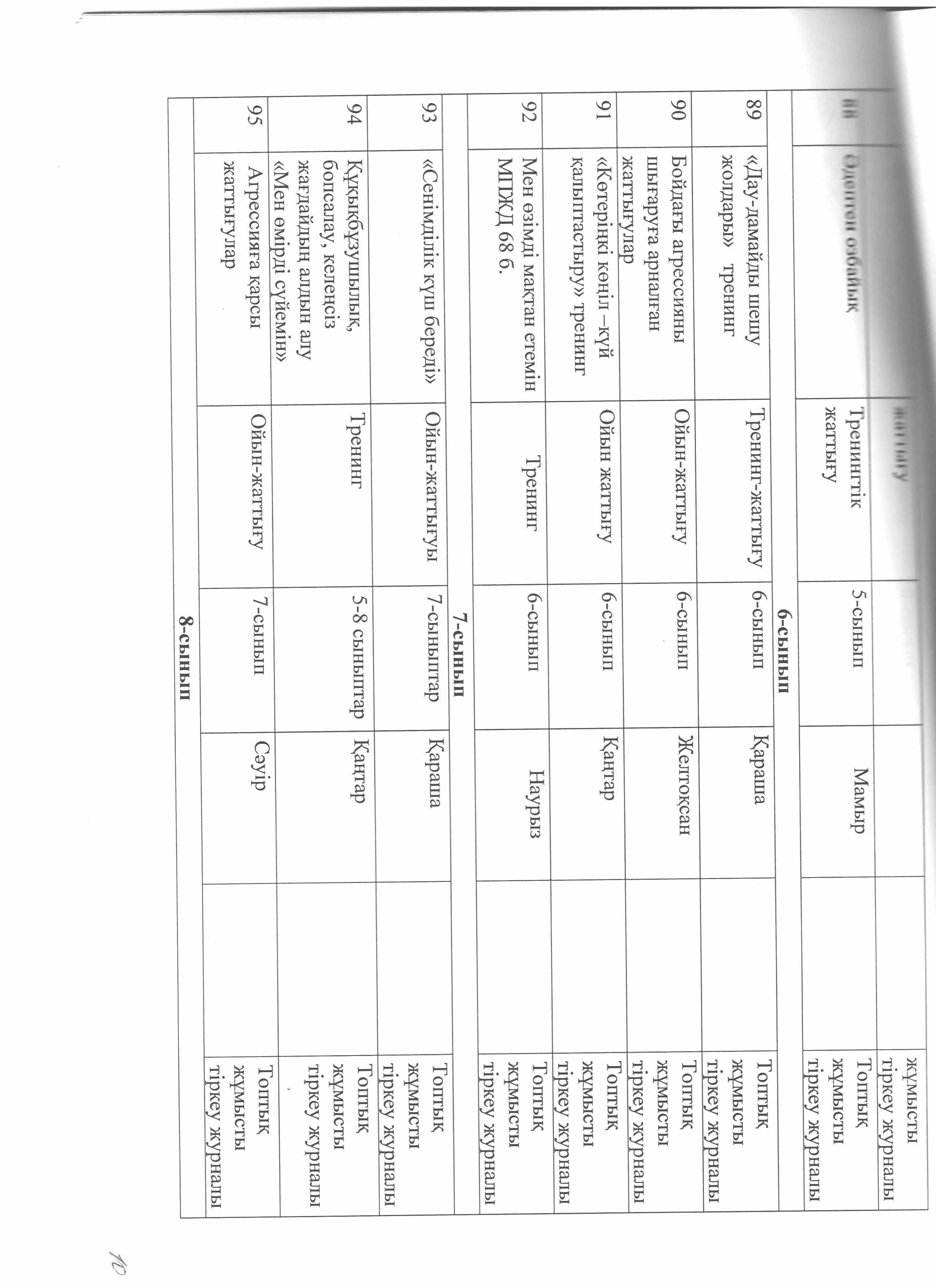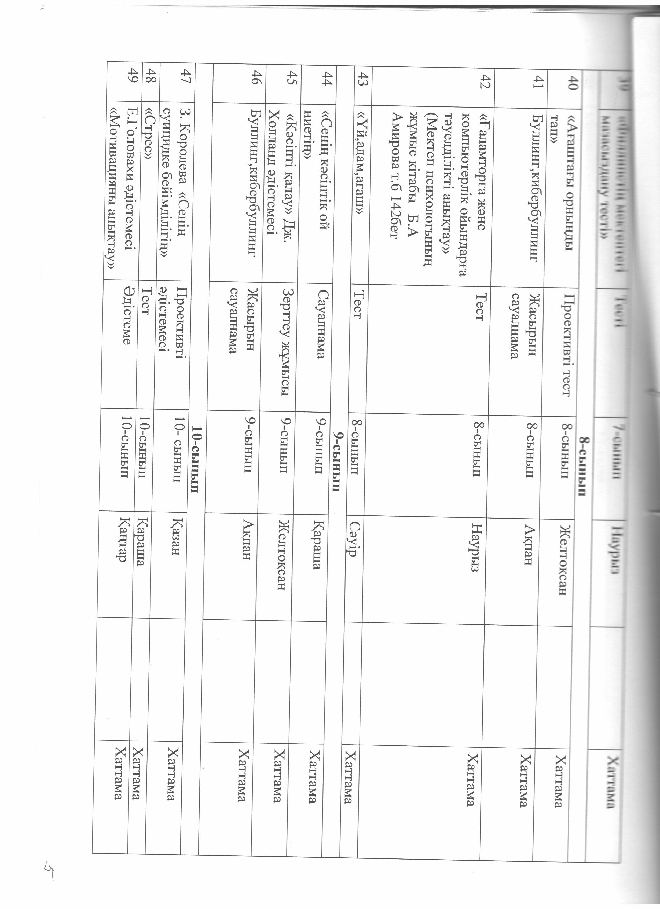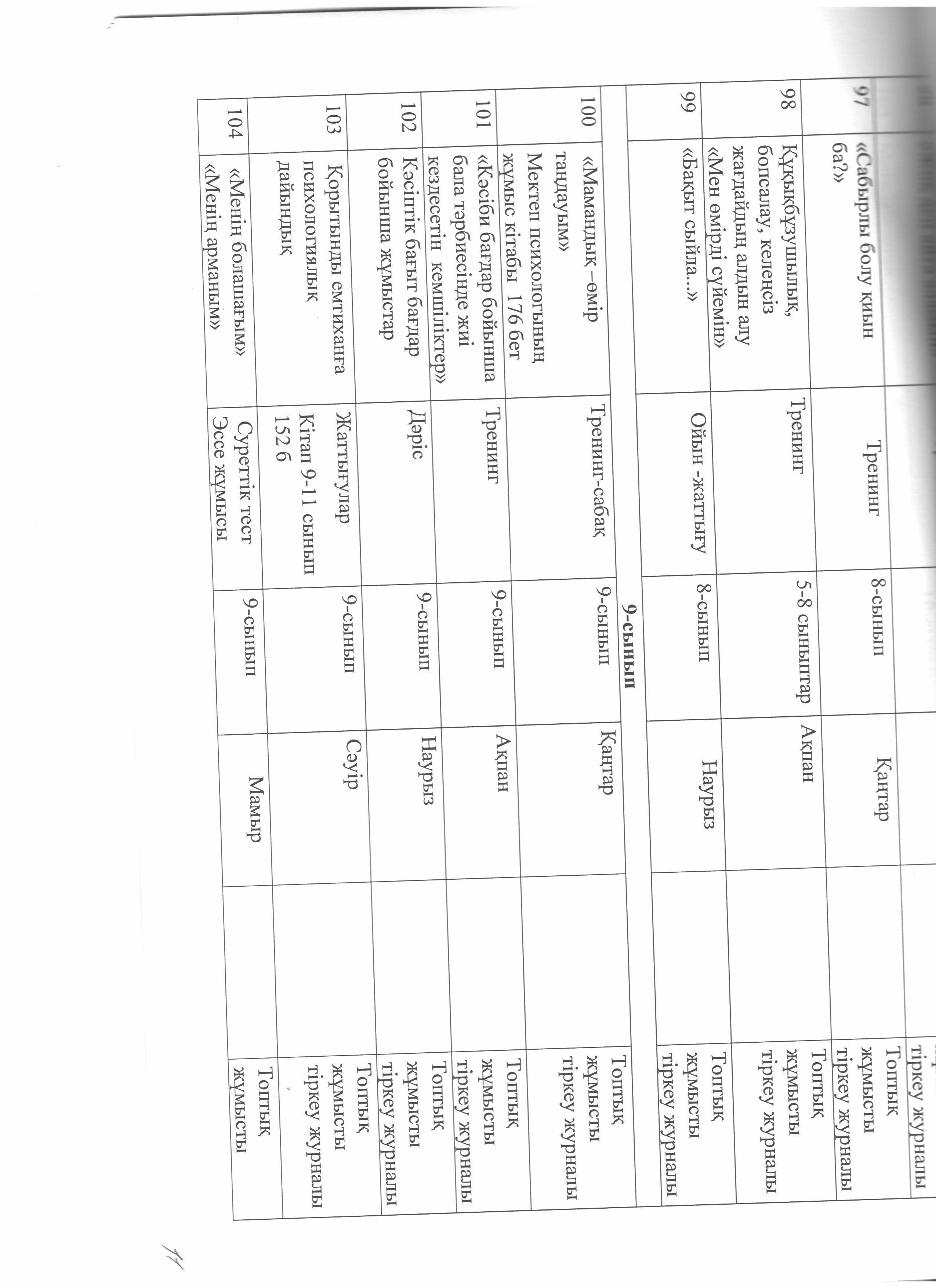 педагог-психологтың жылдық жұмыс жоспары » Коммунальное государственное учреждение 'Средняя школа гимназия имени Кадыргали Косымулы Жалаири'