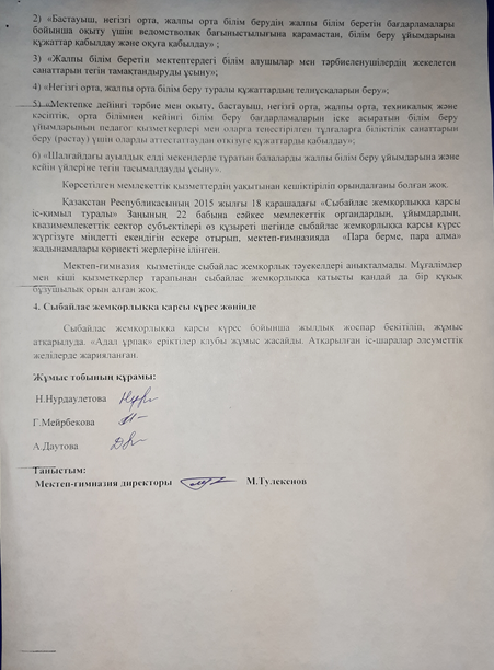 Сыбайлас жемқорлық тәуекелдеріне ішкі талдау анықтамасы » Коммунальное государственное учреждение 'Средняя школа гимназия имени Кадыргали Косымулы Жалаири'