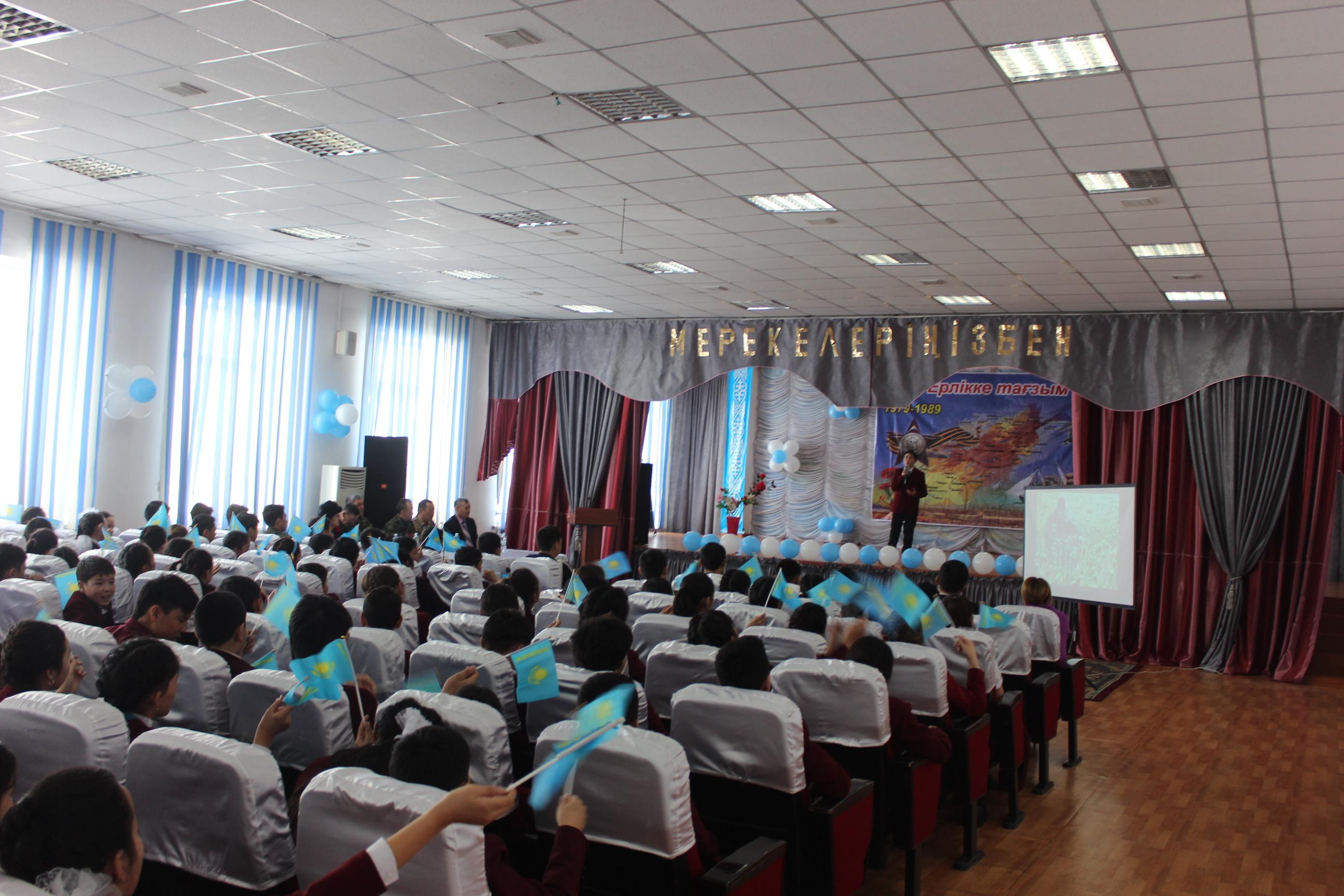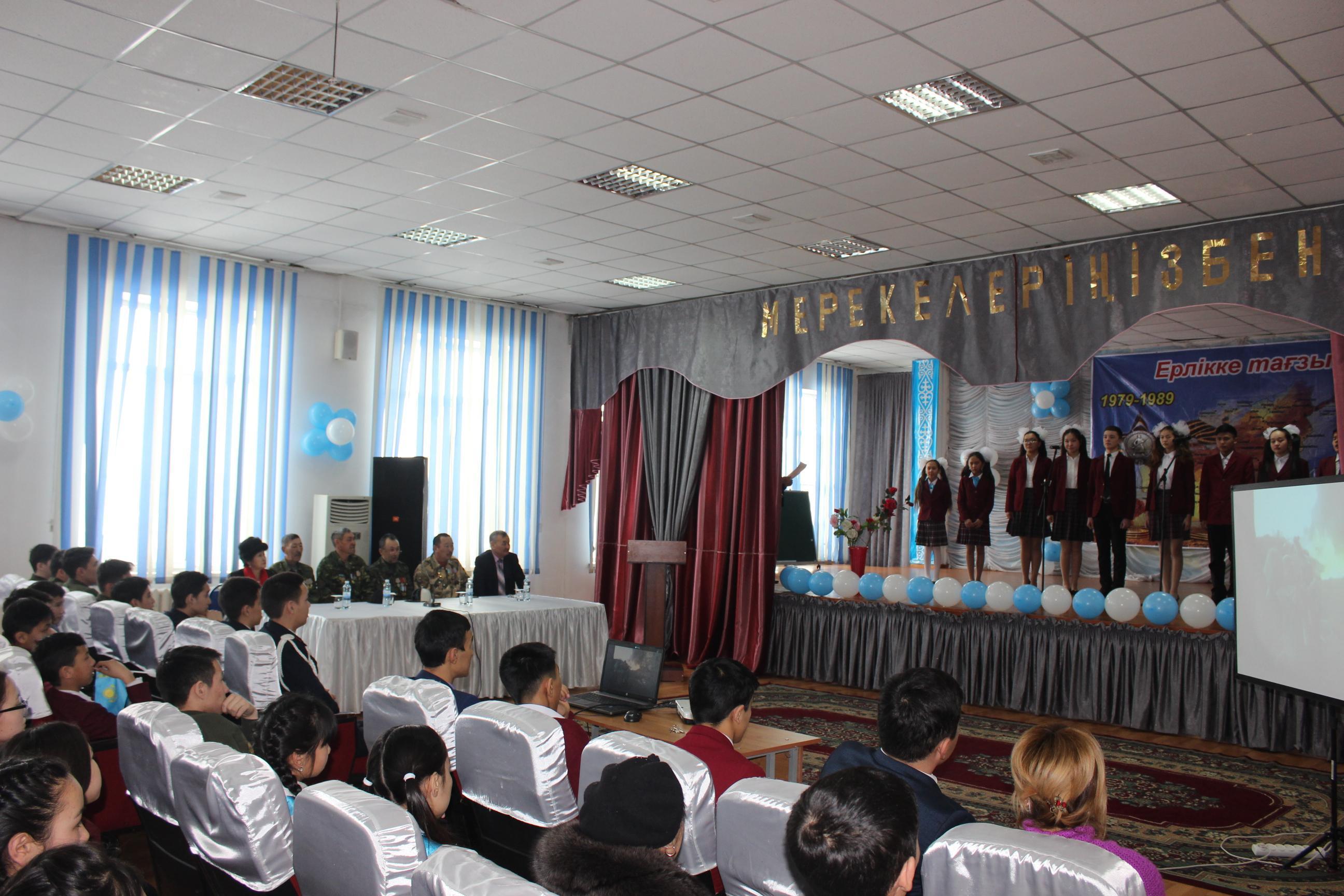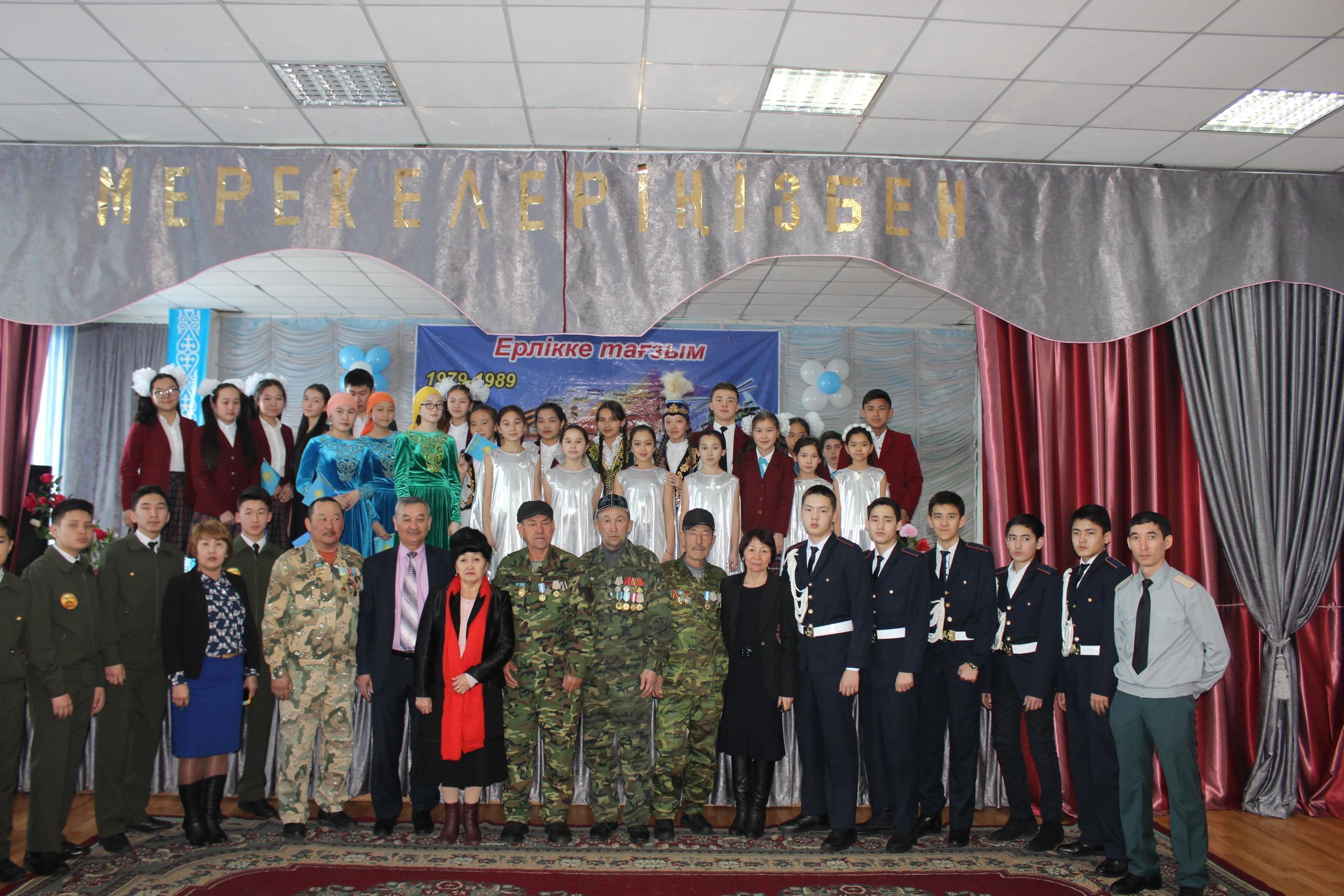 2018 жылдың14 ақпан күні мектеп-гимназия мәжіліс залында Кеңес әскерлерінің Ауған республикасынан шығарылғанына 29 жыл толуын атап өту мақсатында Ауған соғысының ардагерлерімен мерекелік кездесу өтті.