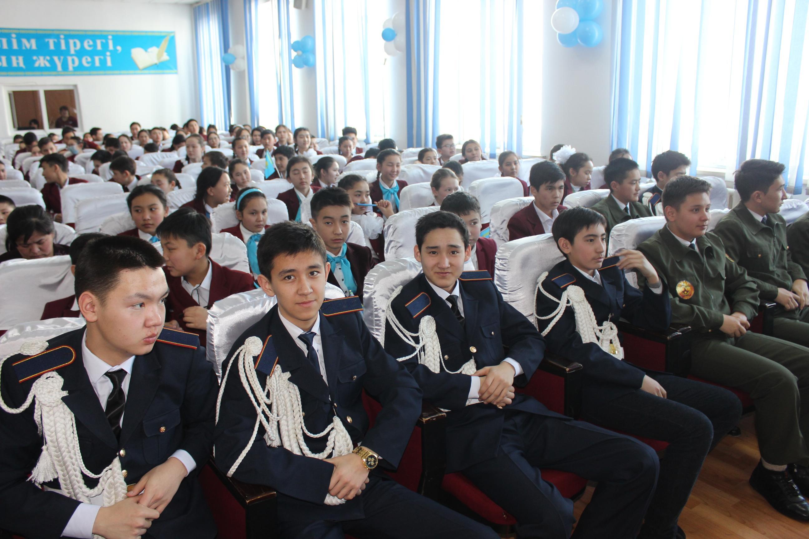 Жексенов Қадылбек Нұрбекұлы және мектеп-гимназия әжелер алқасының мүшесі Райымбекова Гүлнұр Шалбайқызы, аудандық жастар ресурстық орталығының жетекшісі Дәурен Молдағали, мектеп-гимназия ұстаздары мен оқушылары қатысты.
