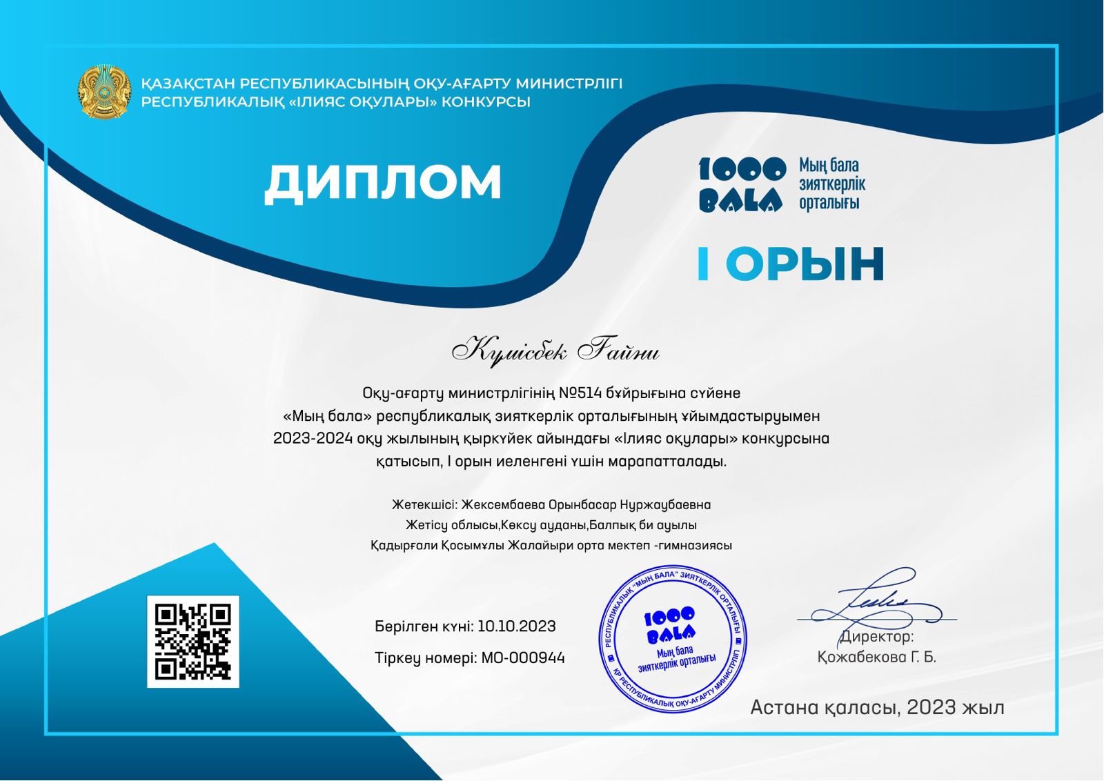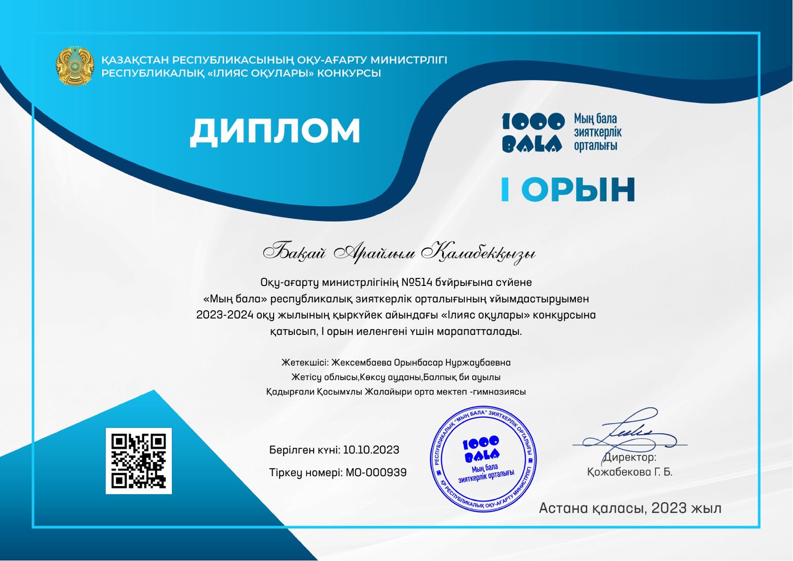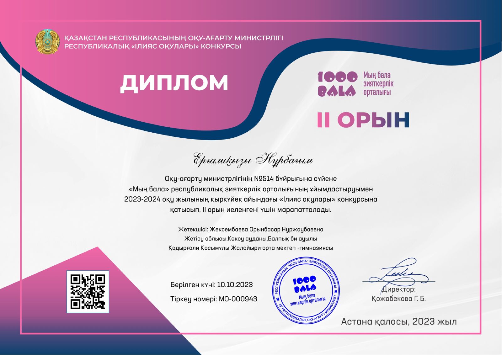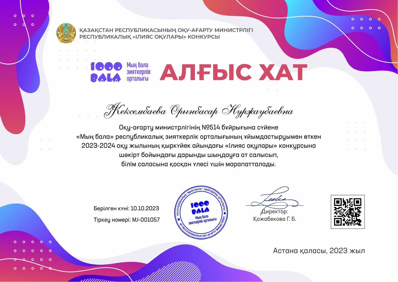 13 октябрь 2023 0 1 2 3 4 5 2 Б сынып оқушылары қашықтықтан өткен "Ілияс оқулары" байқауына қатысып, жүлделі орындарға ие болды.