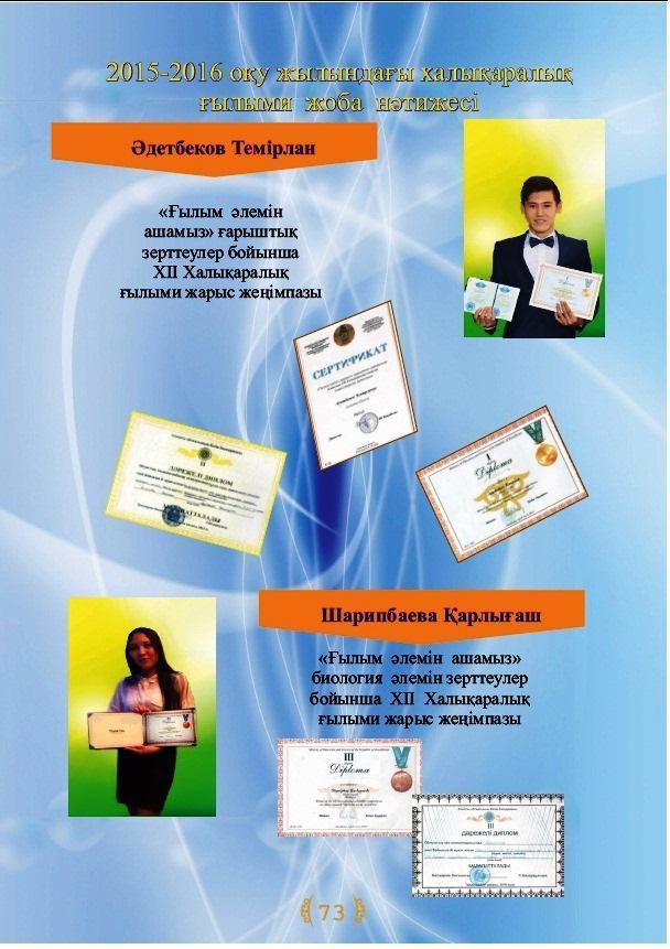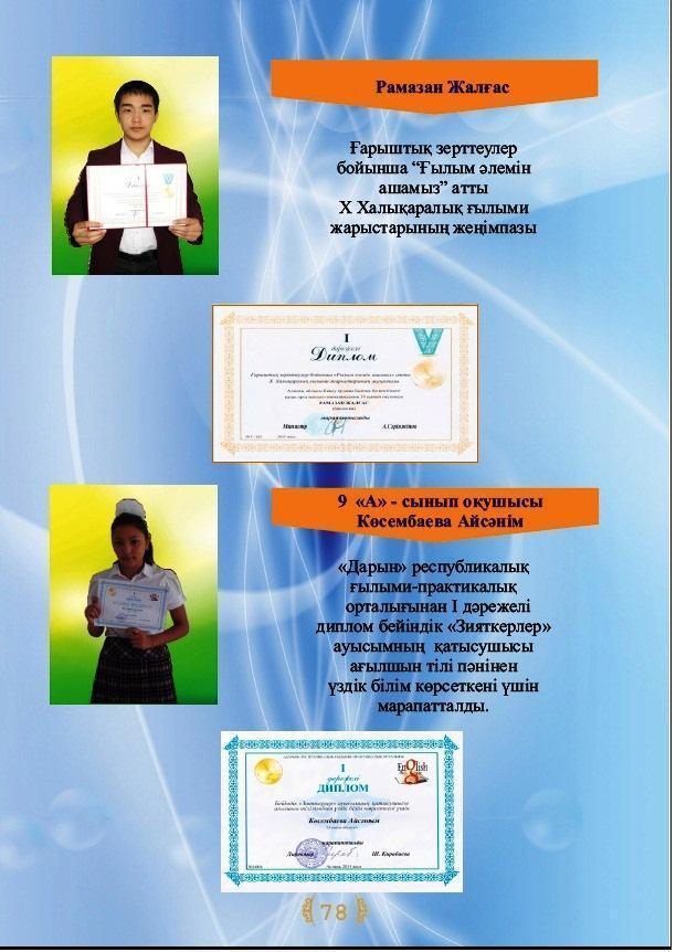 Оқушылар жетістіктері » Коммунальное государственное учреждение 'Средняя школа гимназия имени Кадыргали Косымулы Жалаири'