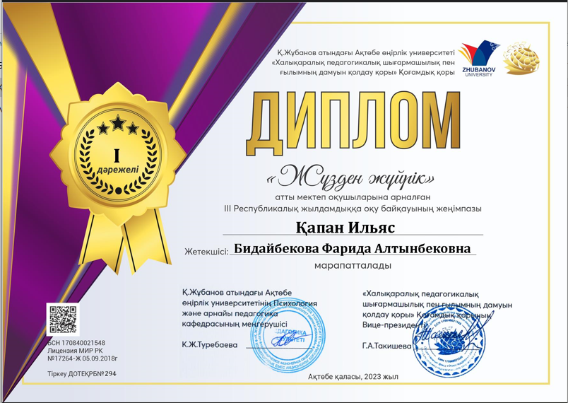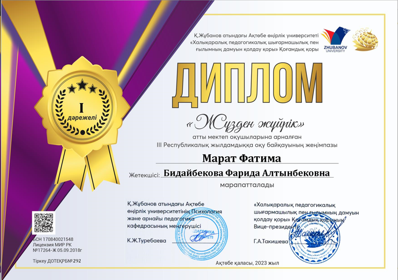 "Жүзден жүйрік" жылдамдыққа оқу байқауы » Коммунальное государственное учреждение 'Средняя школа гимназия имени Кадыргали Косымулы Жалаири'